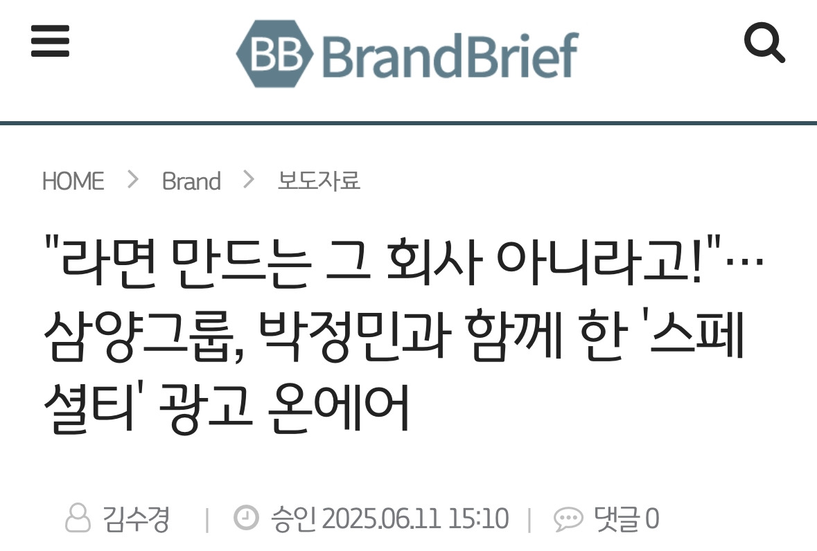 어쨌든 ‘라면 만드는 그 회사 아니라고’까진 효과적으로 전달했다면 (물론 이것도 장기간 인식 싸움이지만) 그다음 더 중요한 ‘그래서 삼양은 ㅇㅇㅇ 하는 기업입니다’를 위해 숱한 고민과 심도 있는 전략이 필요할 것 같다는 생각.