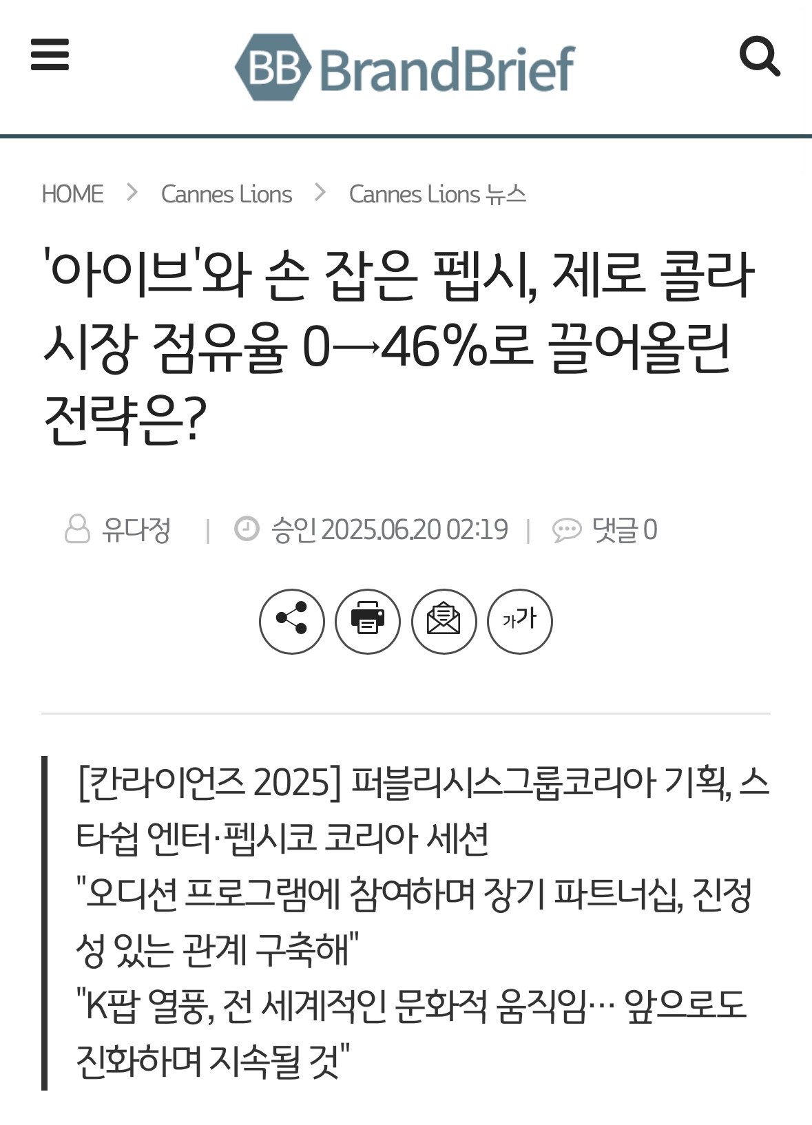 얼마 전 즐겨 보는 채널 브랜드 브리프(Brand Brief)에서 칸 라이언즈에 참석한 펩시코 코리아 세션에 대한 기사를 보았다.