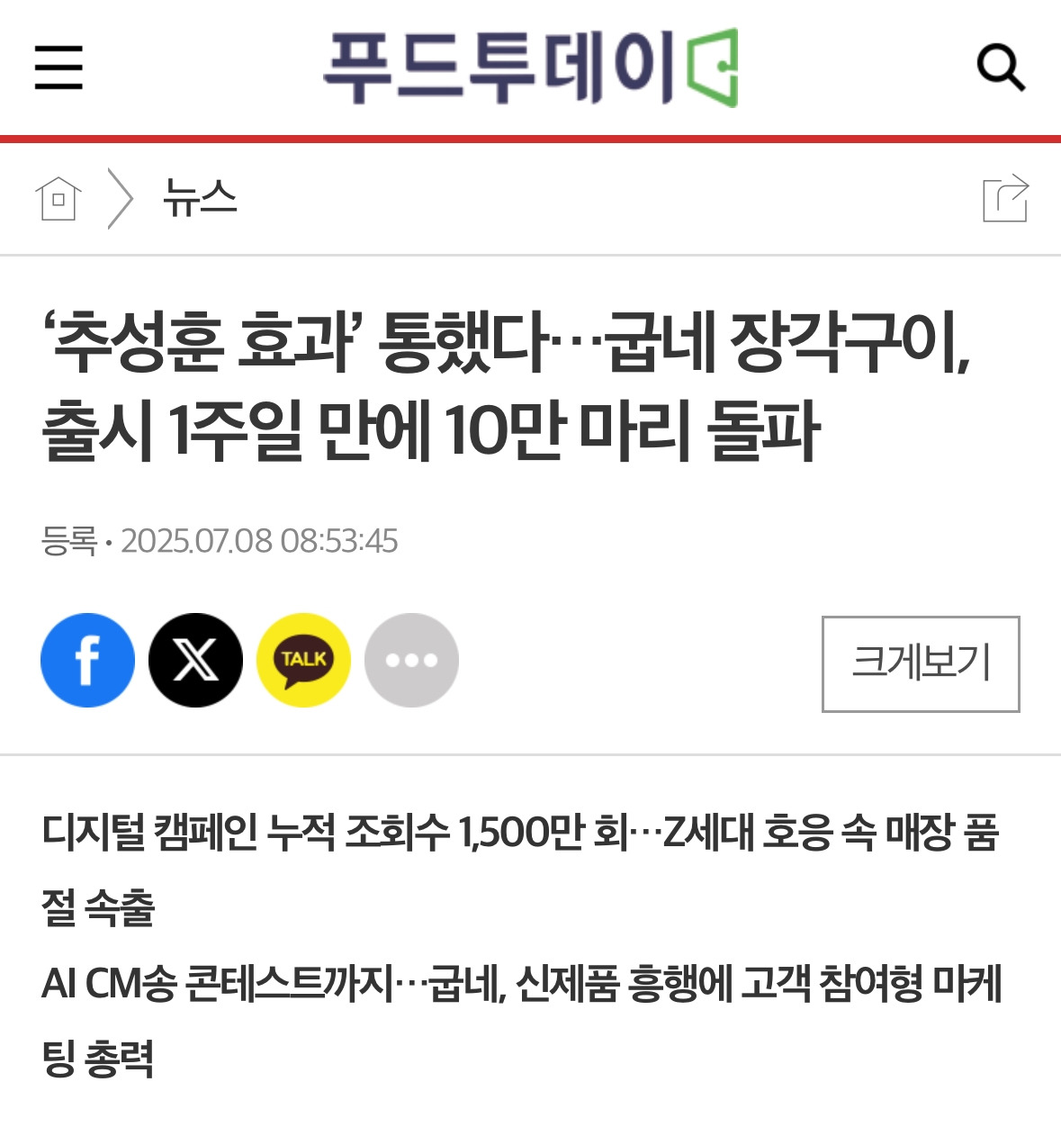 필자가 이번 굽네치킨 광고를 접하게 된 계기는 아래 기사를 통해서였다.