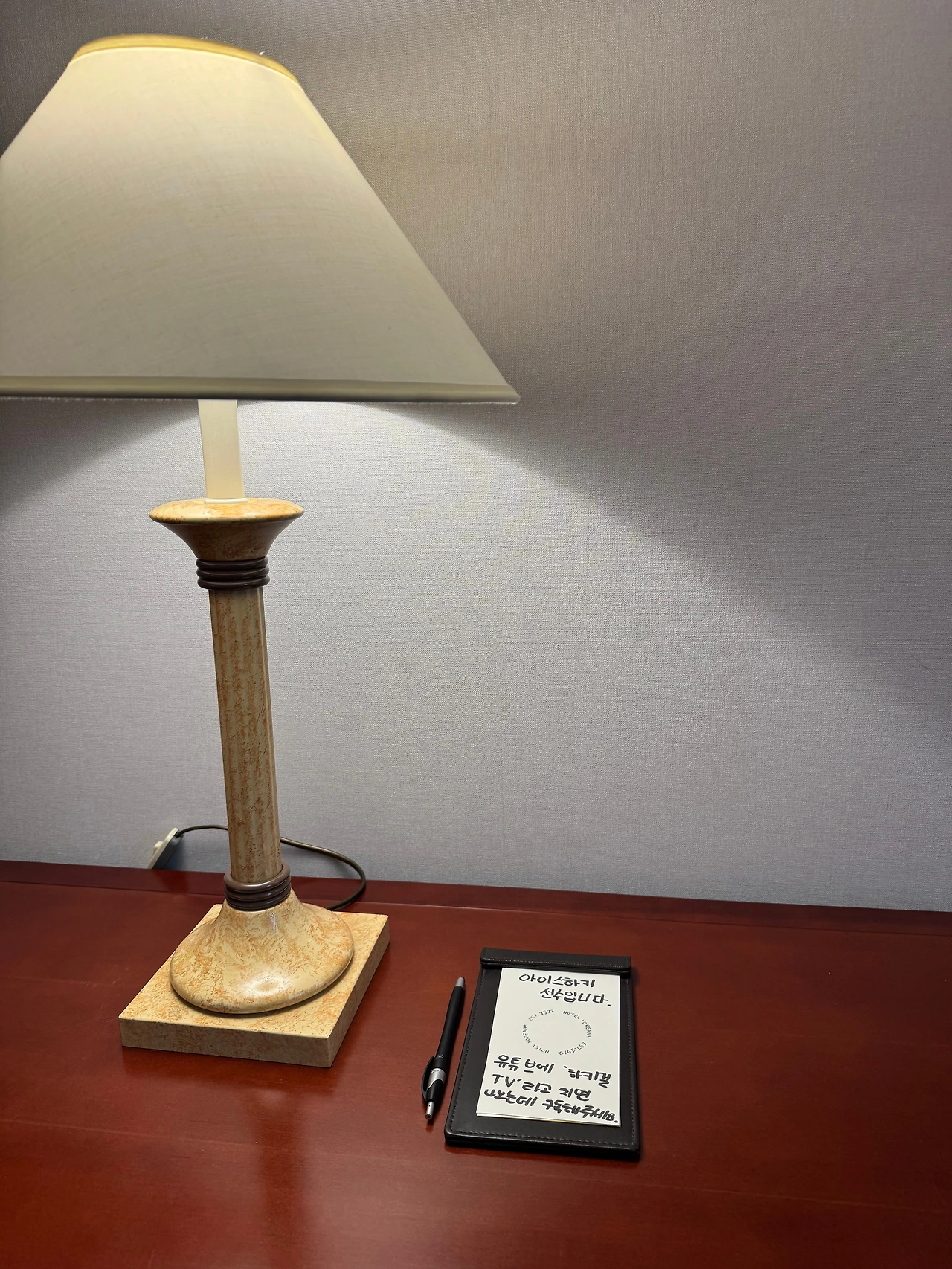 다음날 아침, 숙소 체크아웃 전에 딸아이가 호텔 방에 있는 메모지에 무언가를 끄적거린다.