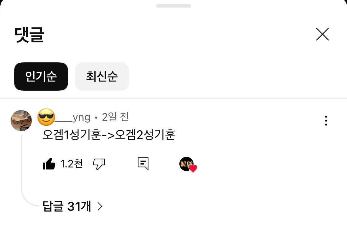 정말 유튜브에 댓글들 센스는 대단하다..