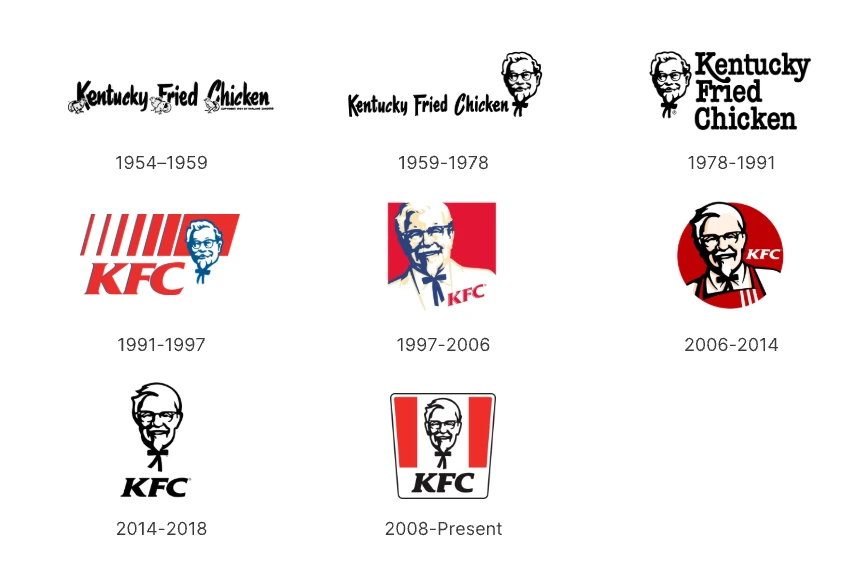 그동안 KFC는 대부분의 글로벌 브랜드들이 그렇듯 크고 작은 로고 변화를 가져왔다.