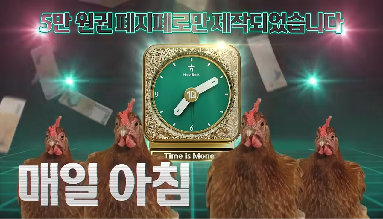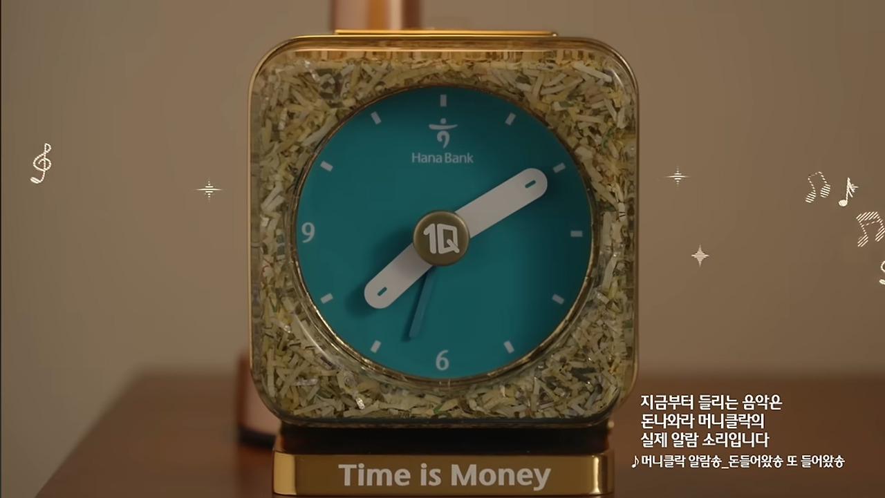 하나은행 본사 사옥을 지나갈 때 저 폐지폐로 만든 알람시계를 본 적이 있었는데 영상 등을 찾아보진 못했다. 그런데 이런 기사를 보니 궁금해서 찾아봤다. 그리고 그 키치 함에 조금 놀랐다.