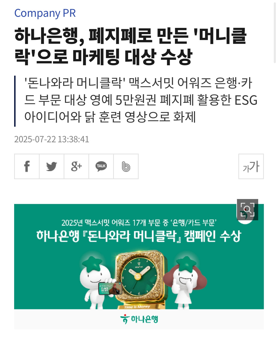 필자는 하나은행의 마케팅을 유심히 지켜보는 편인데 얼마 전 본 기사가 있다.
