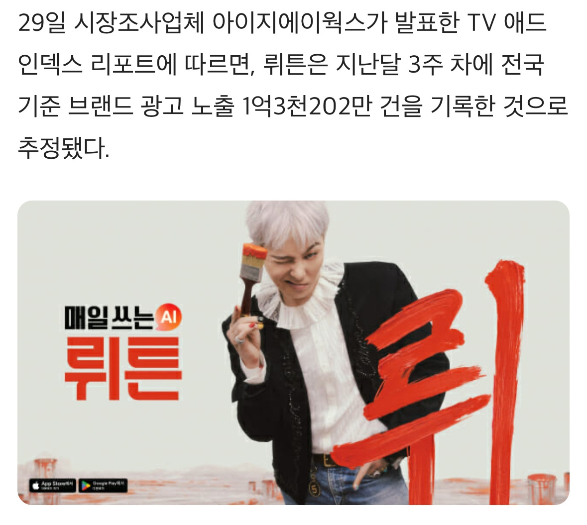 필자도 뤼튼 광고가 시작된 다음날 아침 광화문 옥외광고에서 접했고 재빨리 논평 글을 썼는데 조회 수가 상당히 많이 나왔다.