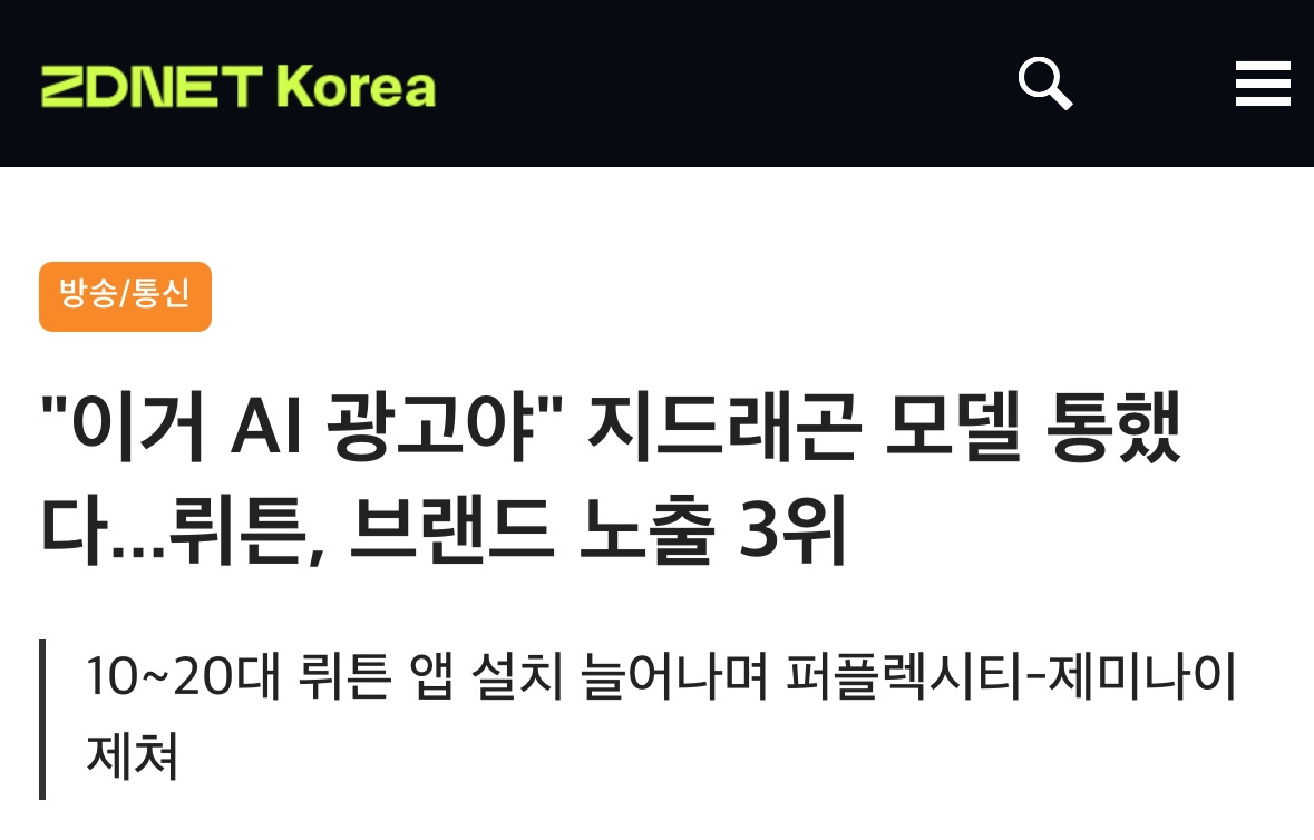 그나저나 지디넷 기사에서처럼 브랜드 노출 3위라는 게 결국 어마어마한 매체비를 집행했다는 뜻인데, 이 광고가 ’통했다‘라는 헤드라인은 좀처럼 이해가 가질 않는다. 기사 역시 후속 PR이겠지만..