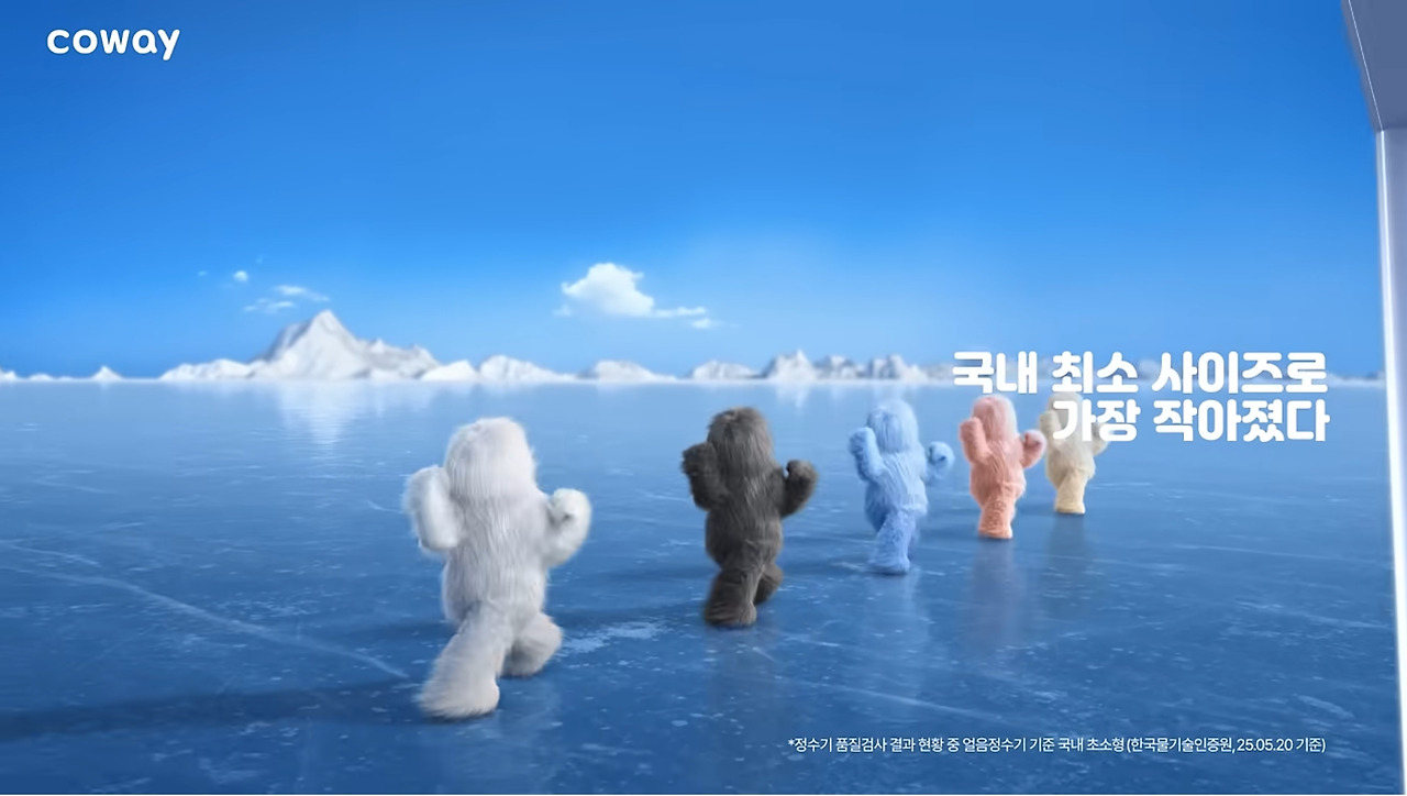 그간 코웨이 광고 스타일과는 조금 결이 다르긴 하지만, 찌는듯한 여름 털북숭이 캐릭터 비주얼이 인상적인 광고다.