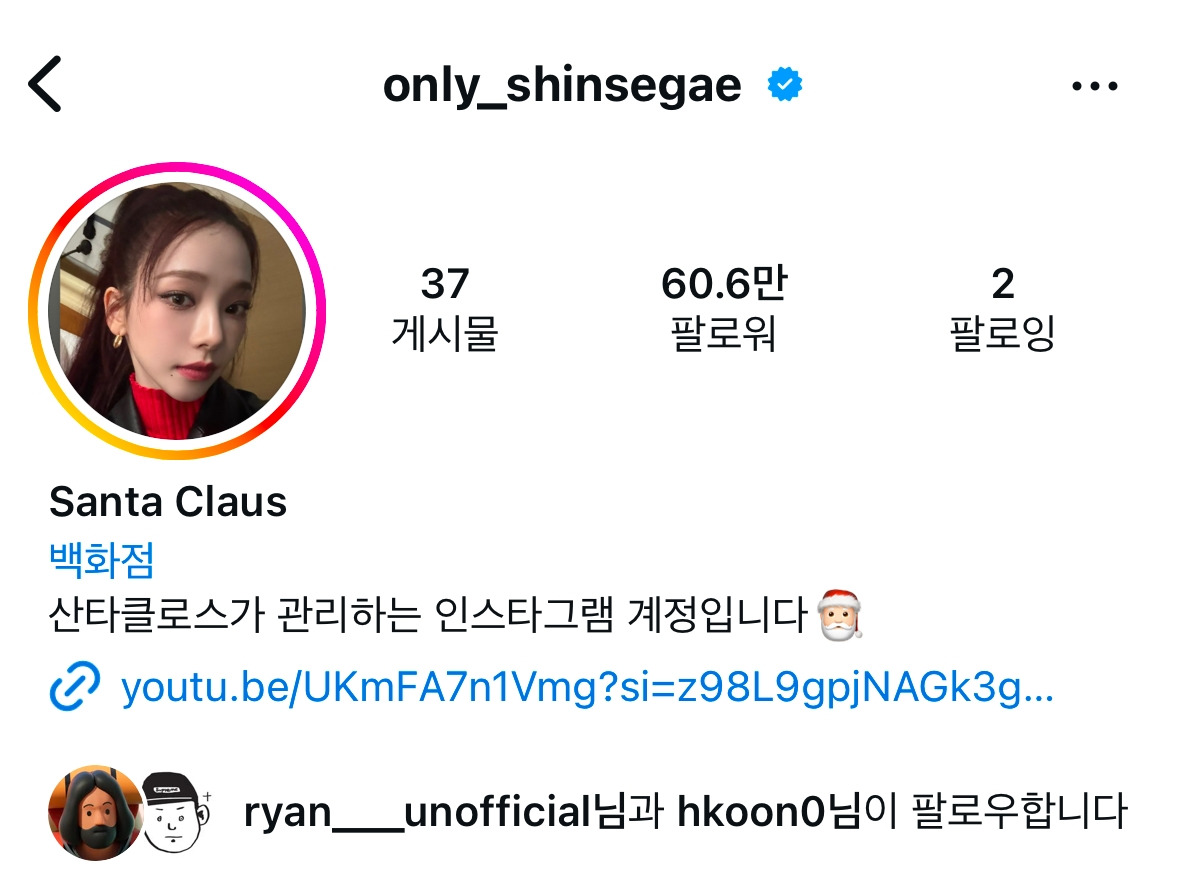 컨셉은 실제 산타가 운영하는 것처럼 표현한 신세계 계정.