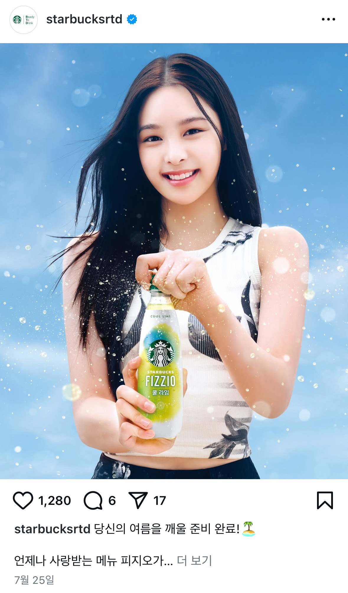 + 스타벅스 피지오 광고 모델은 신인 걸그룹 앳하트(AtHeart)의 멤버 ‘나현’ 씨라고 한다. 음반도 저 밝은 표정만큼이나 시원하게 잘 되시길 바라본다^^