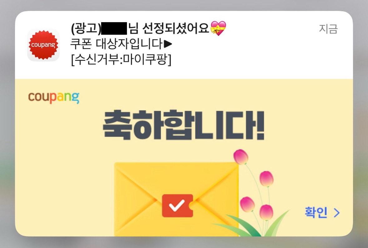 (그나저나 표시광고법상 이런 문구에 문제 소지는 없나 궁금하긴 하다. 그런데 뭐 쿠폰 제공 대상자를 어떤 기준으로 설정했는지는 모르지만 이 역시 제공자 측에서 선정했다면 되는 부분일 테니? 그리고 허위 정보도 아니니..)