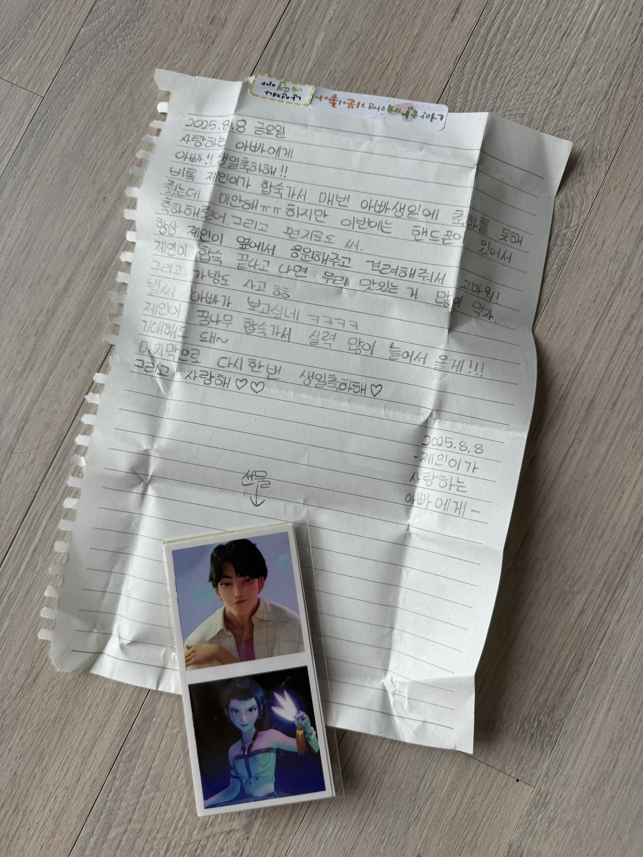 그리고 합숙 기간이 아빠의 생일과 겹쳐 함께 하지 못했던 딸내미가 꼭꼭 적어둔 손 편지를 오늘 건네준다.