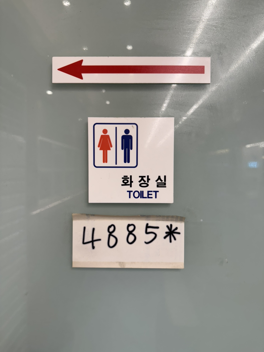 화장실로 나가는 문에 비밀번호가 적혀있었다.