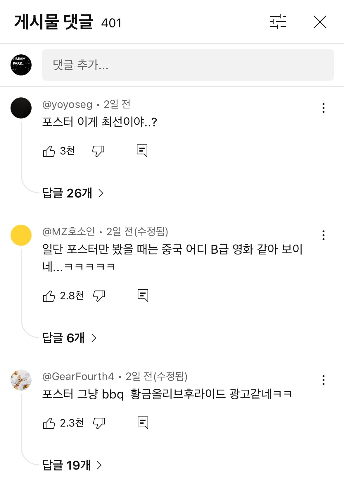 진짜 댓글들 센스가 보통 아니다.