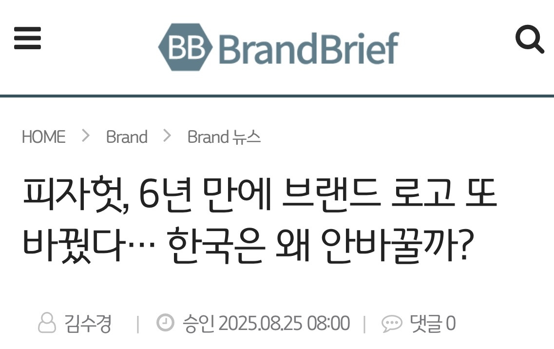 지난 2019년 이후 6년 만에 변화라고 하는데, 기존 로고는 국가마다 적용 여부가 달라 상이한 곳이 있었다 한다. 그래서 일관성을 강화하는 차원도 있는 것 같다. 다만 한국 피자헛 2014년, 소위 이제는 전전 로고를 사용하고 있었다는데 기업 회생절차를 밟고 있는 상황이라 새로워진 글로벌 로고는 당분간 적용치 않을 것이라 한다.