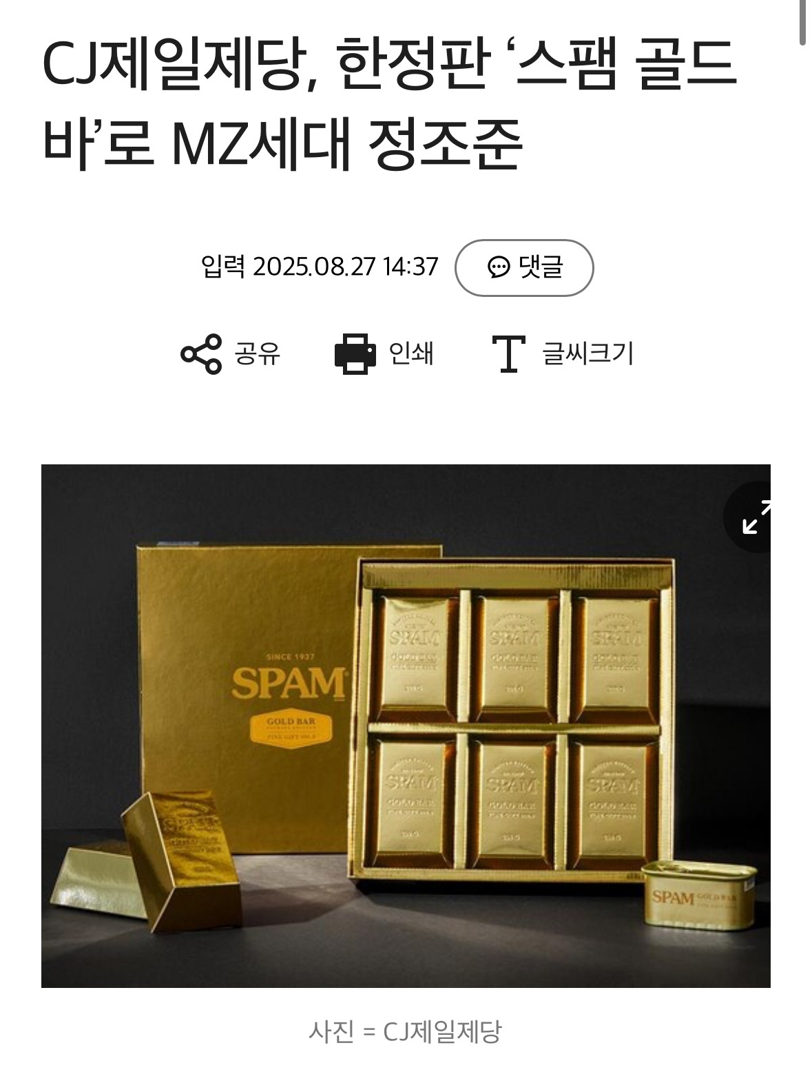 며칠 전 CJ제일제당에서 스팸 골드바 한정판을 선보였다.