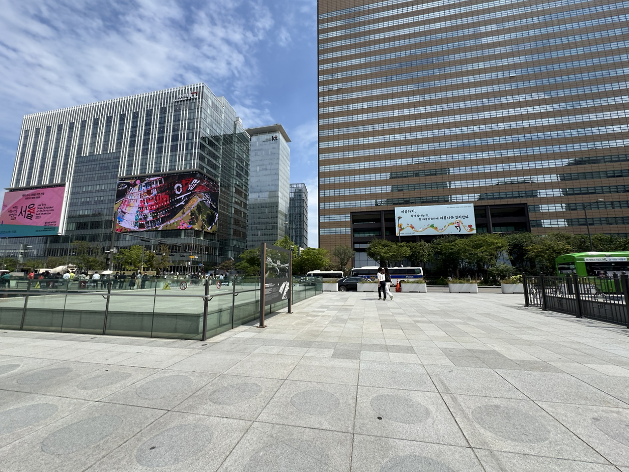 어제는 마침 옆에 새롭게 오픈한 KT 광화문빌딩 West에 대형 옥외광고 (광화문 스퀘어란 이름을 단것 같다)와 나란히 보니 더욱 대비가 되는 느낌이다.