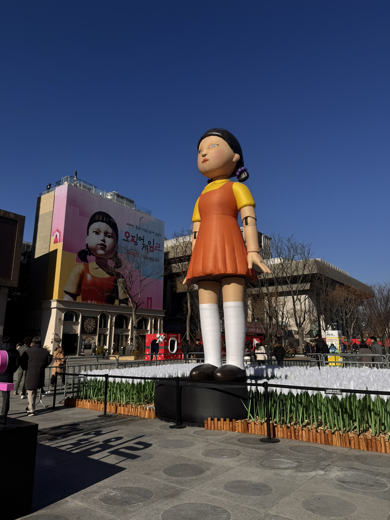 어쨌든 여러모로 이슈와 관심이 될 수밖에 없는 오징어게임2를 맞아 넷플릭스도 당연히 마케팅에 집중하고 있고, 그중 광화문에 등장한 무궁화 꽃이 피었습니다 게임을 상징하는 여자아이 인형은 처음 봤을 때 꽤나 위압적인 느낌까지 들었다.