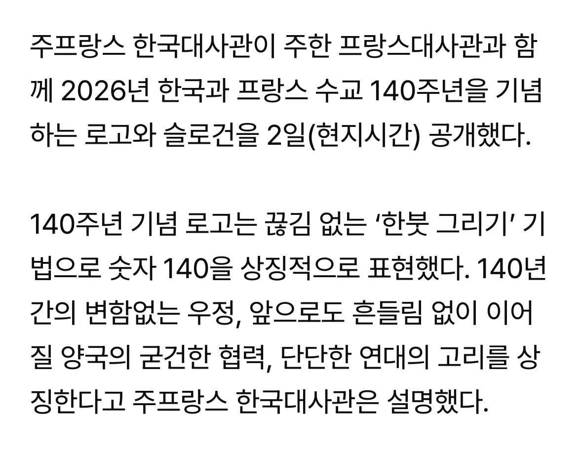 한불 수교, 즉 한국 프랑스 수고 140주년 로고가 공개됐다.