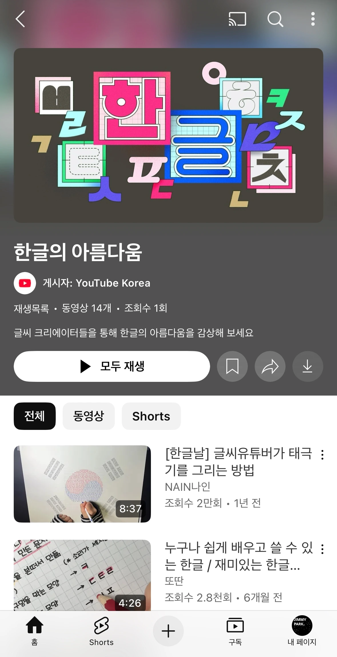 그리고 만날 수 있는 유튜브 코리아에서 큐레이팅 한 한글 관련 재생목록.