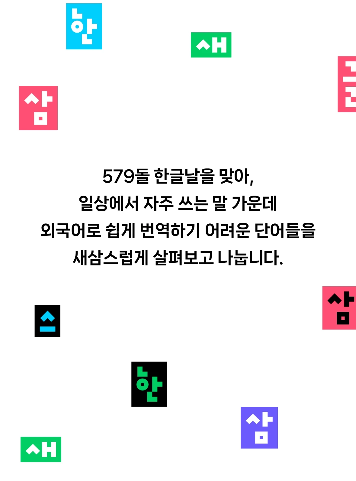 ‘새삼스레’라는 콘셉트는 일상에서 자주 쓰지만 외국어로 번역하기 어려운 단어들을 ‘새삼스레‘ 살펴보자는 취지다.