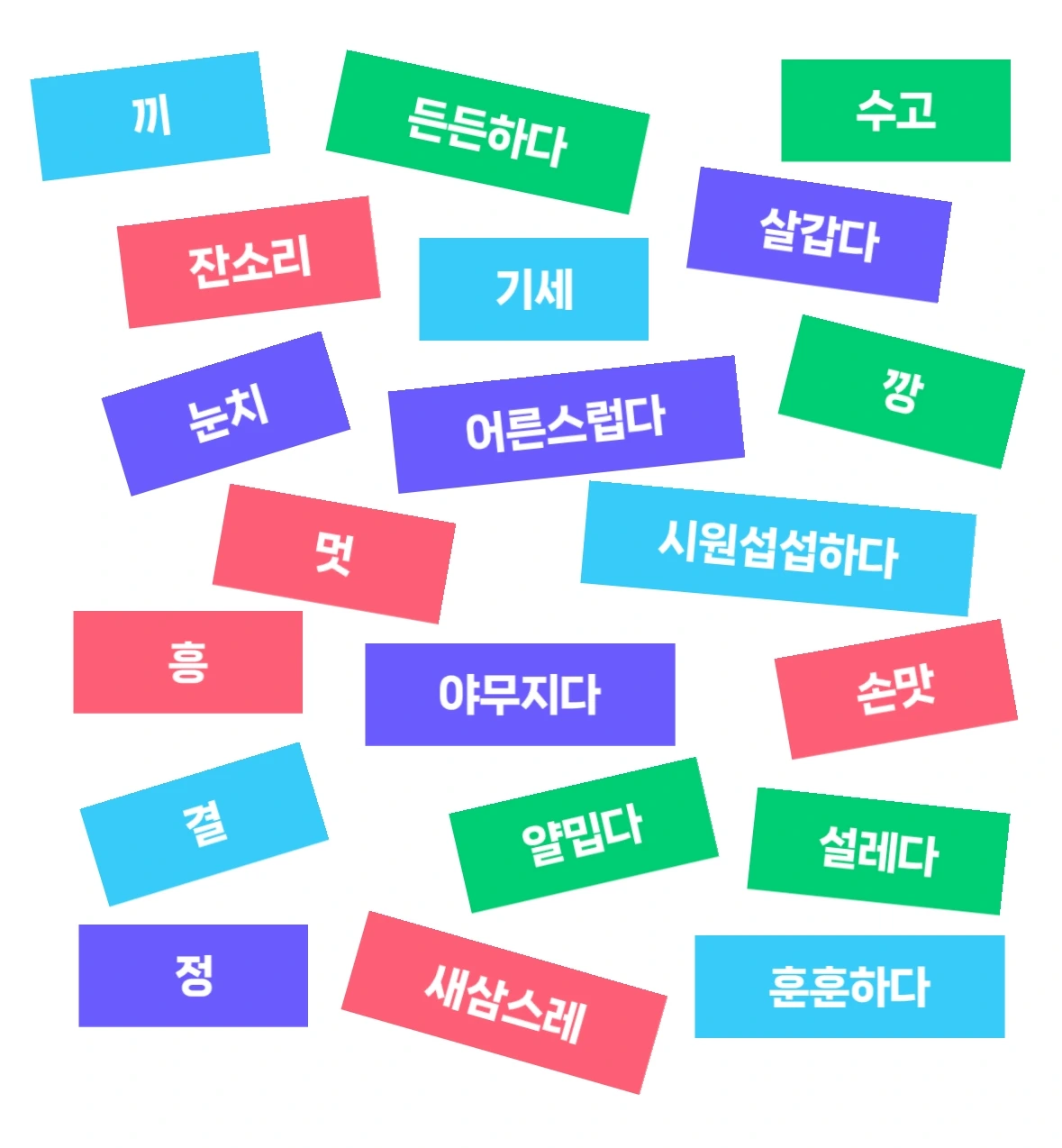 자음 모음들이 모여들어 형성되는 한글의 느낌을 상징한 것일까. 생동감 넘치고 귀엽다.
