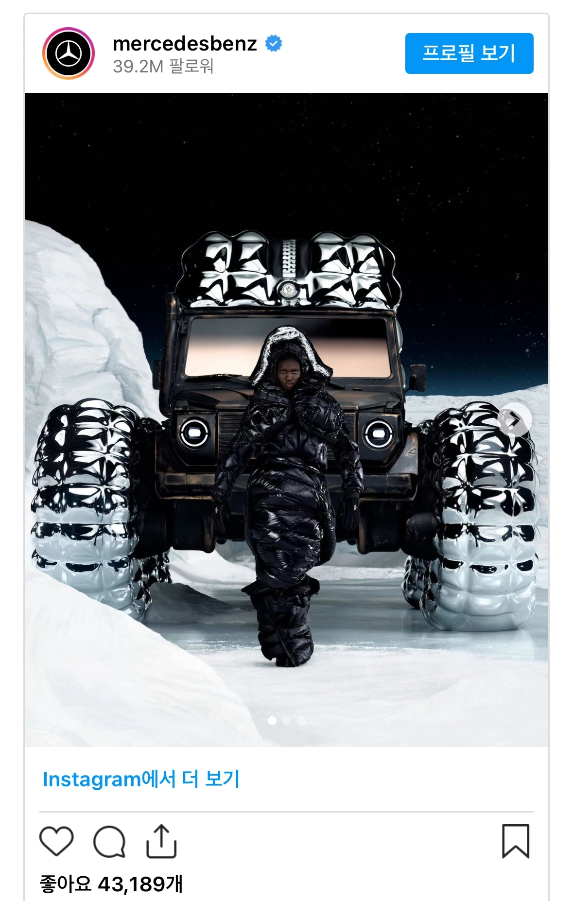 몽클 특유의 패딩을 G바겐에 접목한 일종의 예술적 감각이 몽클레어 답다는 생각이 든다.