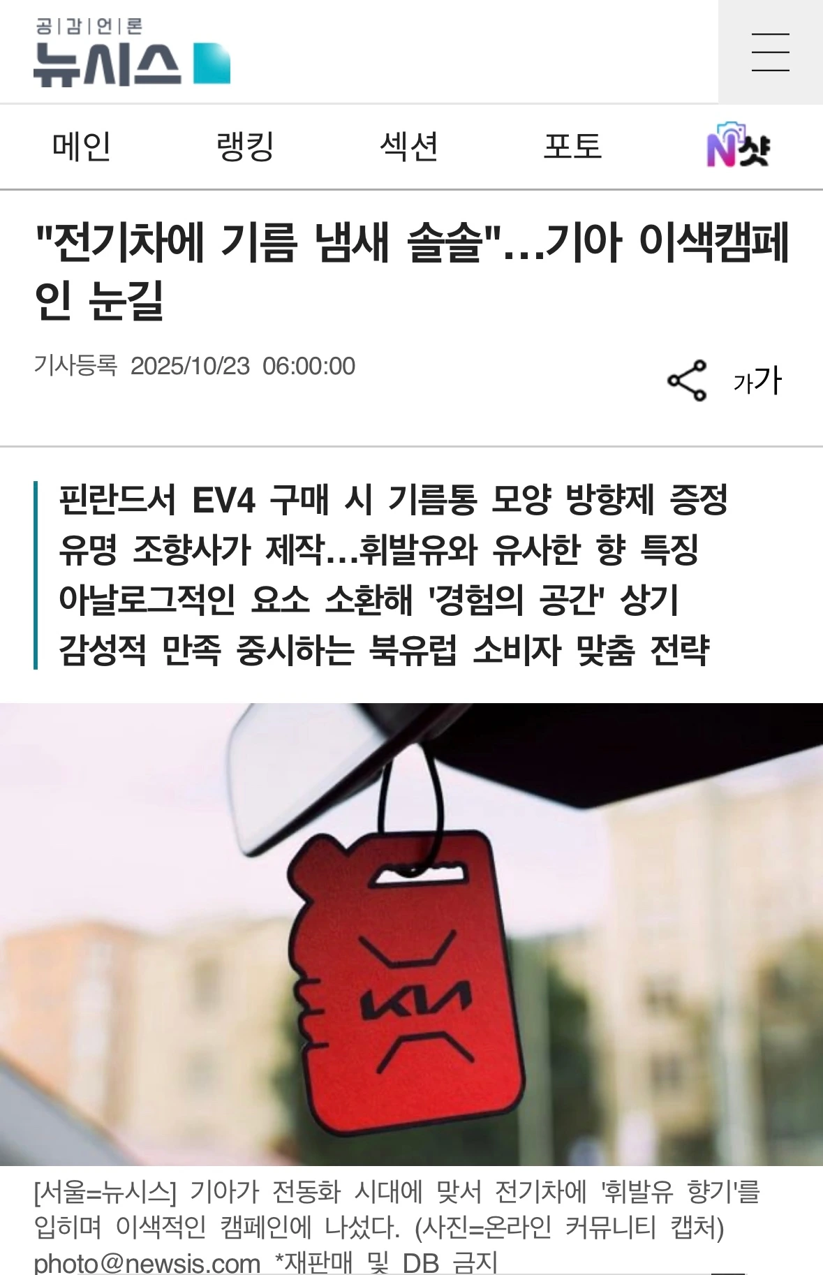 기아 핀란드에서 휘발유와 유사한 향기가 나는 방향제를 전기차 EV4 구매 고객에게 한정 수량으로 제공했다고 한다.