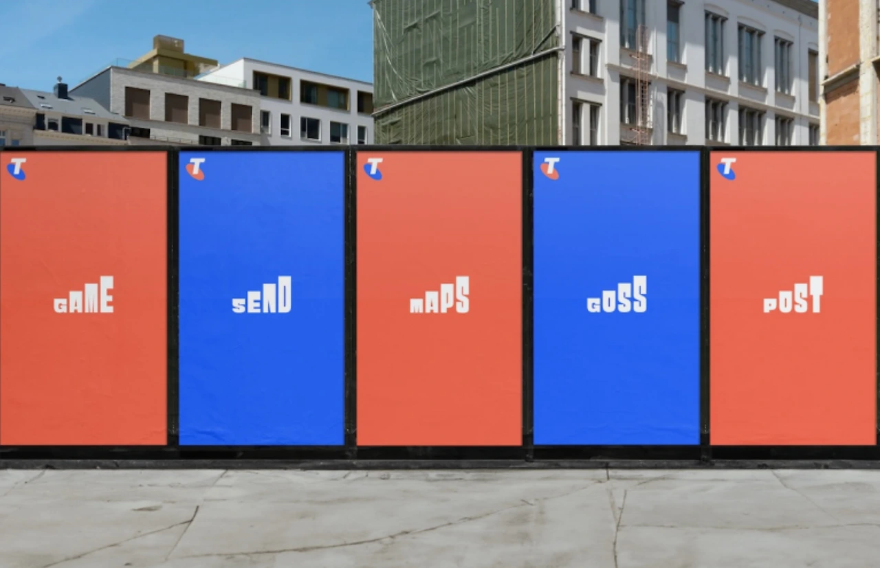 우리에겐 생경한 텔스트라지만 통신을 상징하는 아이콘으로서 기업 브랜드의 본질을 명료하게 표현해냈고, 통신을 통해 누릴 수 있는 편의인 Game, Send, Maps, Post 등 네 개의 알파벳으로 구성된 단어들로 위트 있게 표현해냈다.