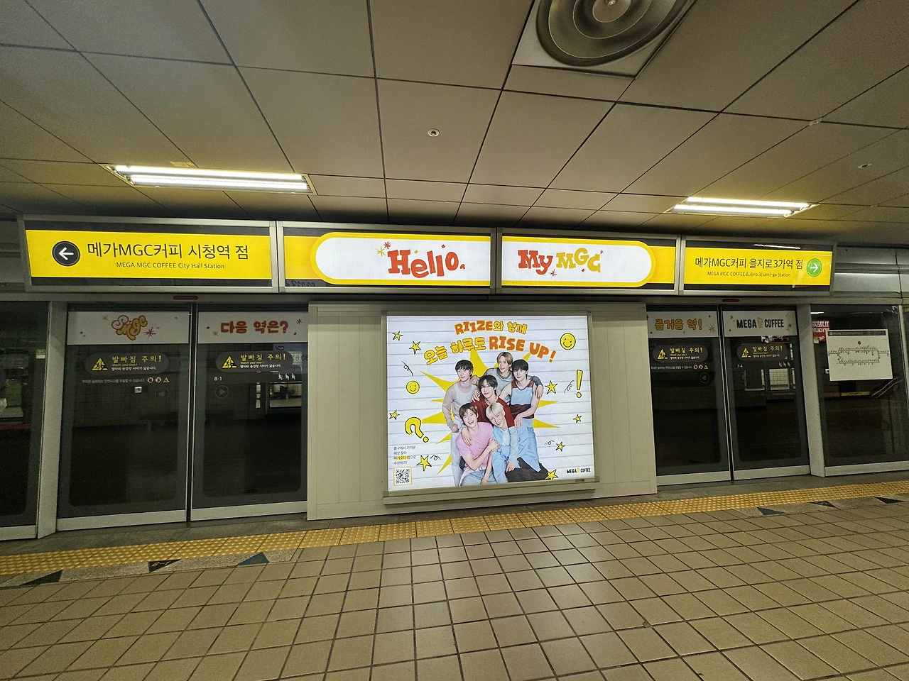 #메가커피 #메가MGC커피 #메가커피광고 #메가커피RIIZE #라이즈 #지하철광고 #을지로입구역 #B디자이너 #지미박