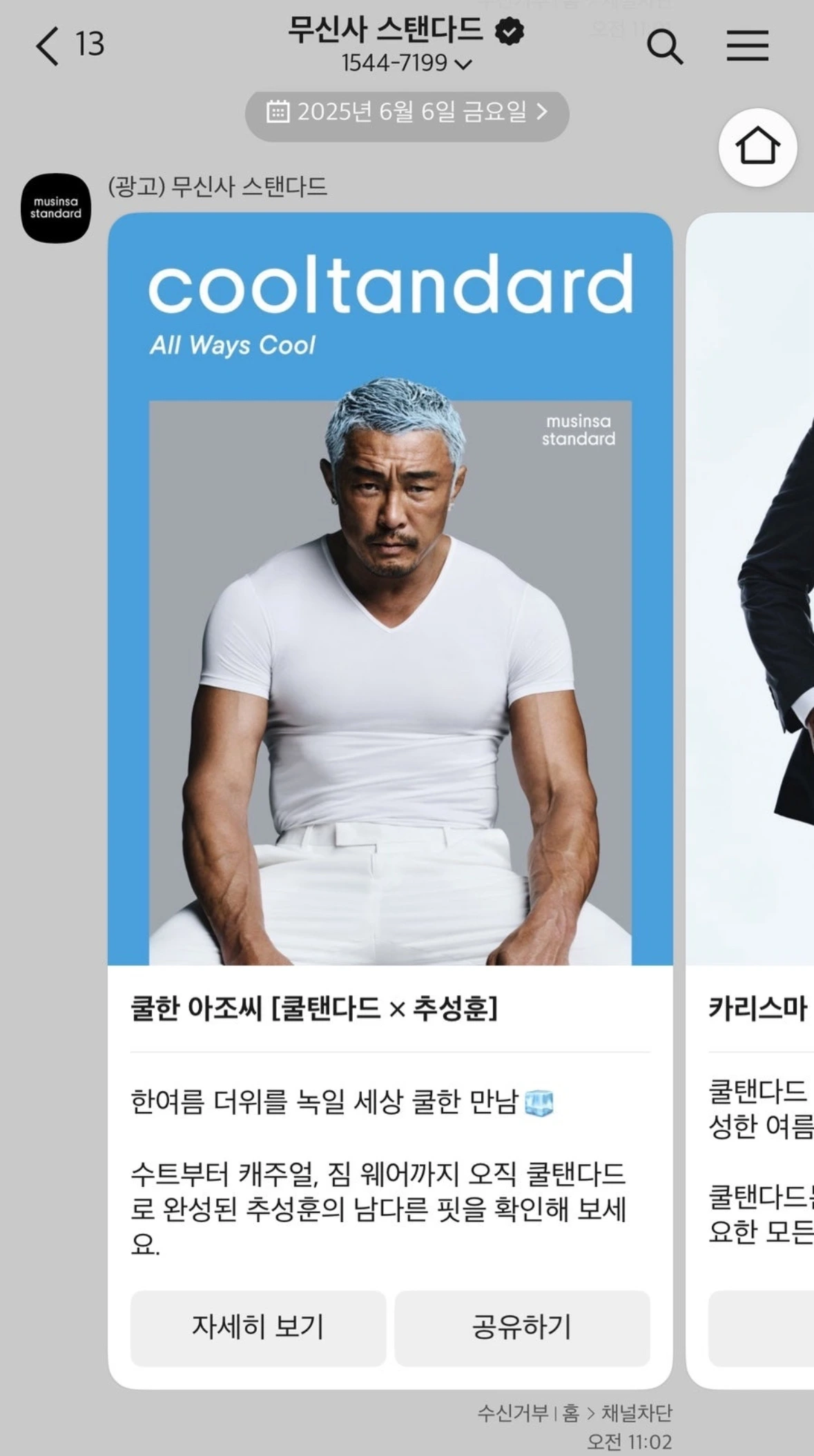 어제 무신사의 카카오톡 채널에선 시선을 사로잡는 힛텐다드 키 비주얼이 있었다.