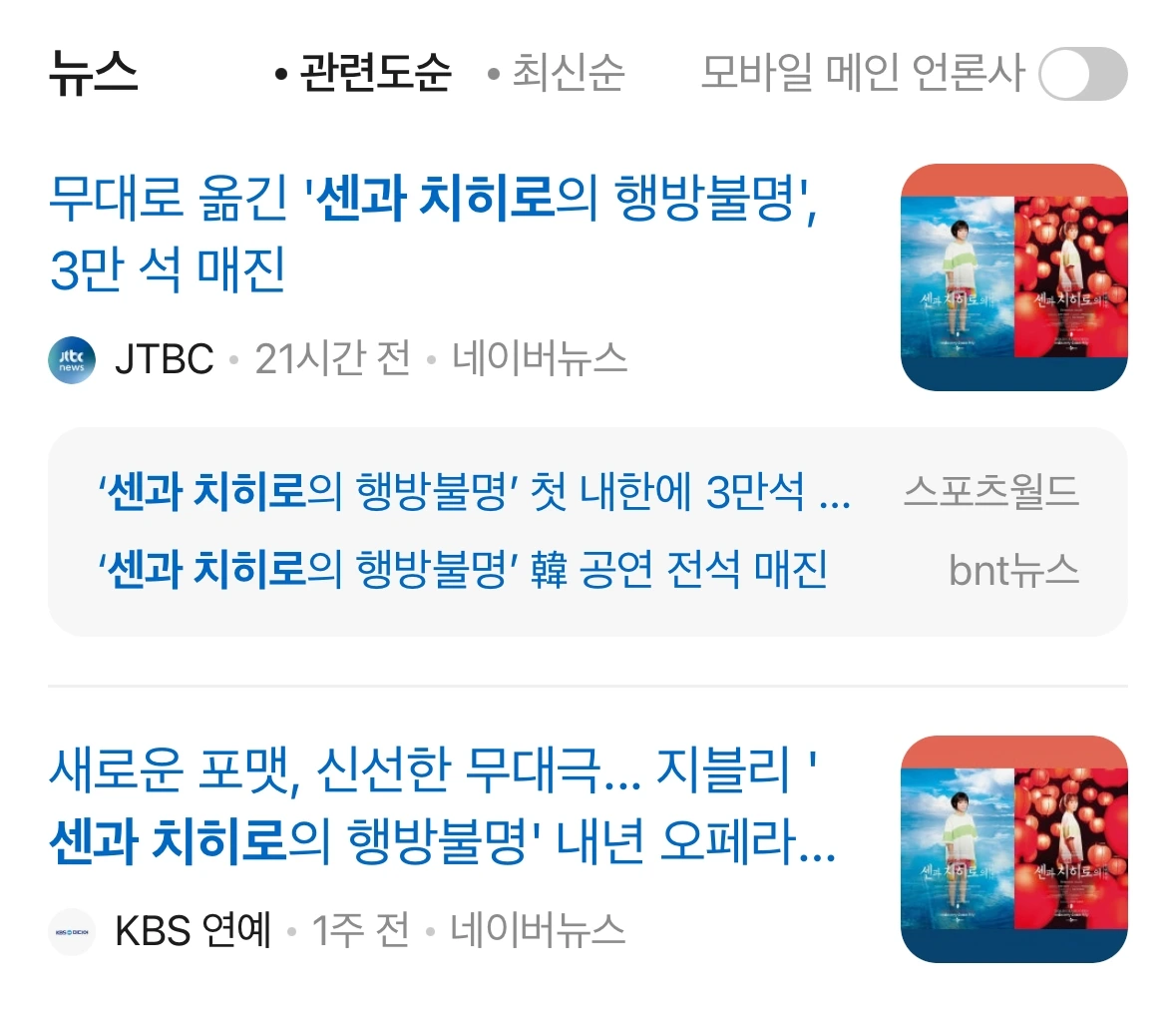 그다음 눈에 들어온 것은 ‘센과 치히로..’라는 타이틀.