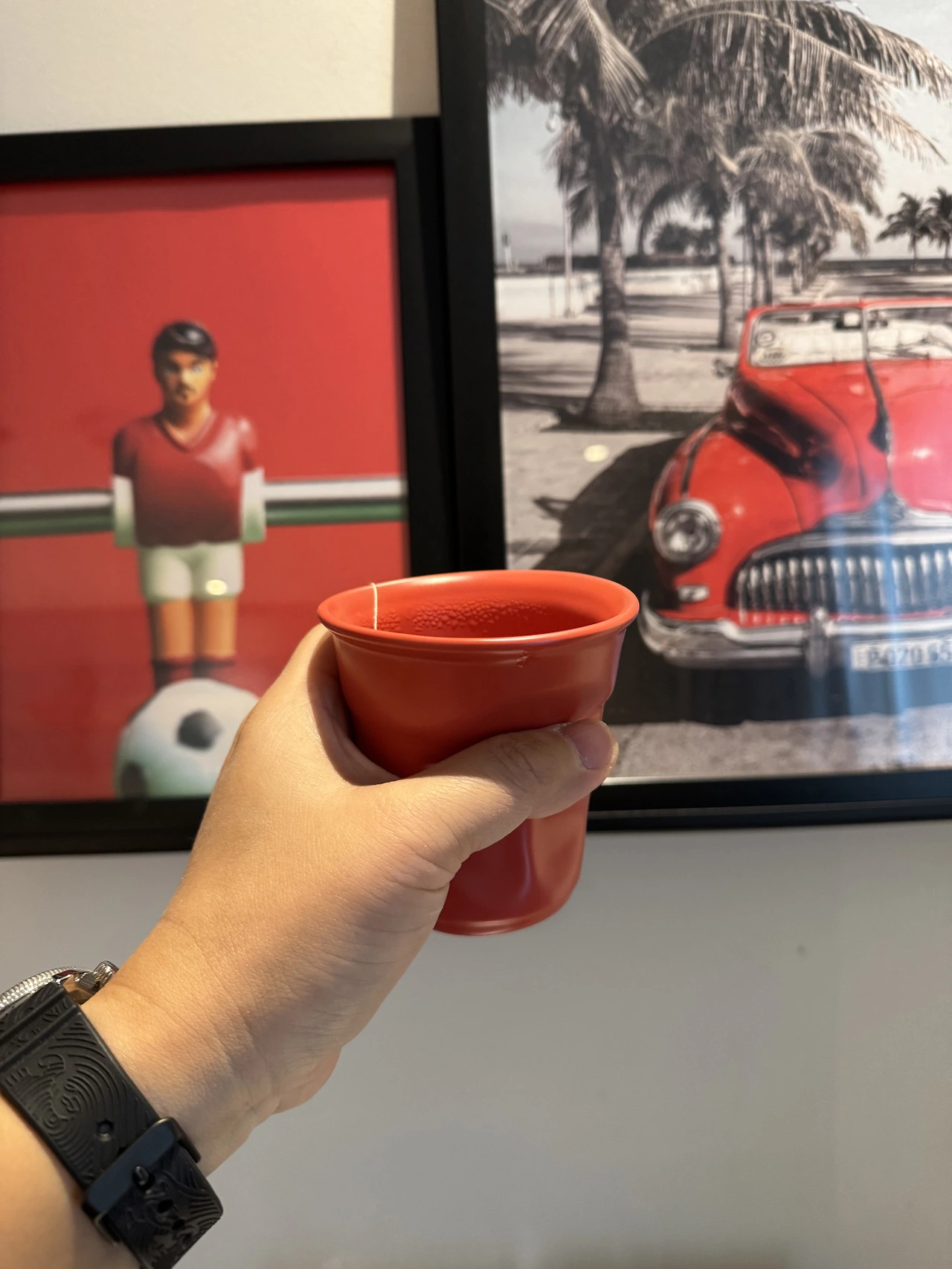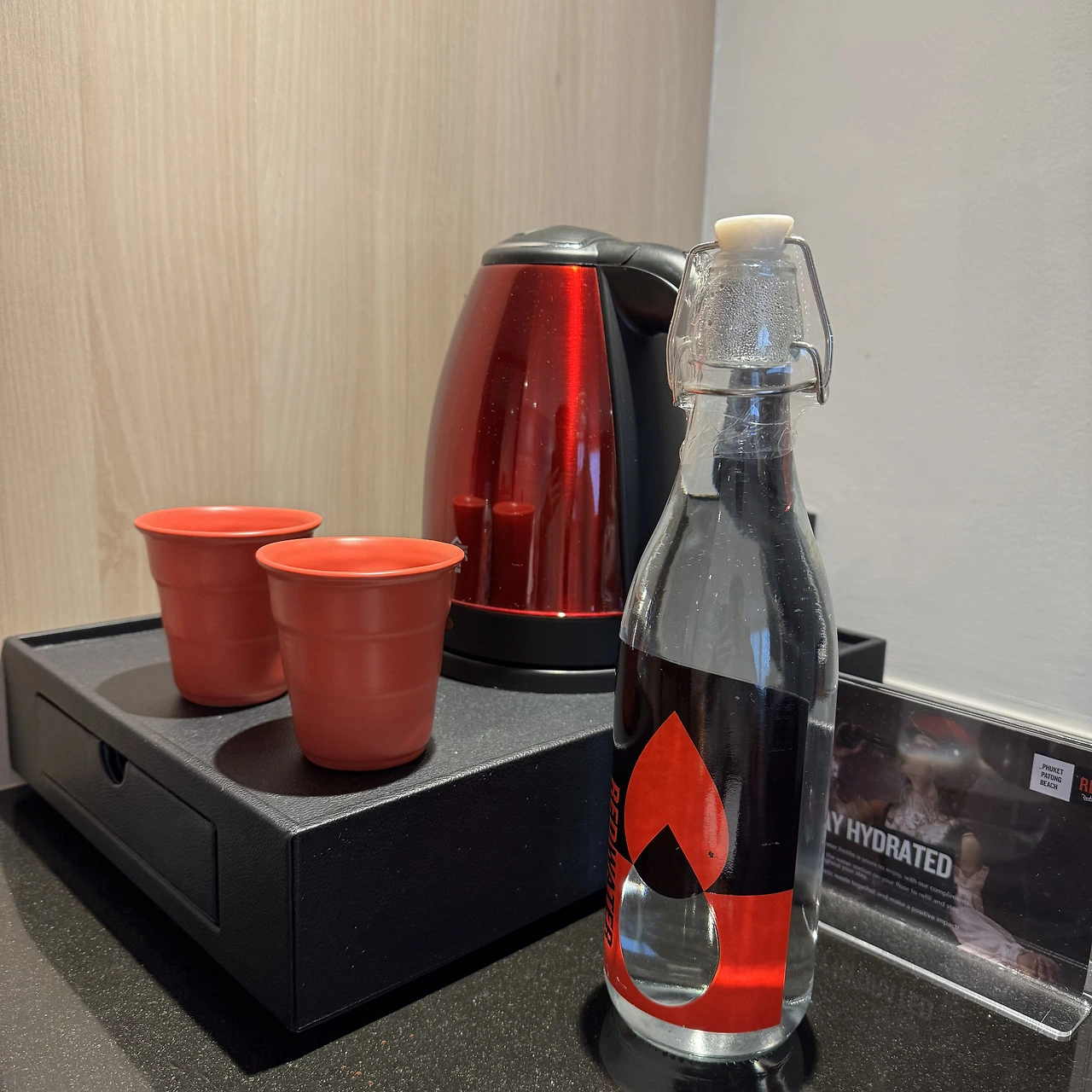 호텔 내 비치된 컵도 역시 빨강색이었는데 모양이 독특하다.