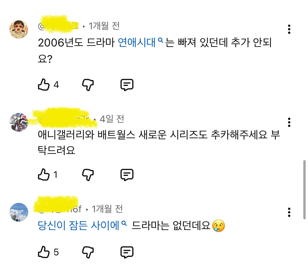 TV나 OTT 시청이 아주 많진 않은 필자라서 그런지 위에서 언급한 대로 넷플릭스에서 SBS 인기 프로그램만 봐도 좋던데, 유튜브 댓글을 보니 시청자들의 요구가 상당히 많은 것을 알 수 있다.