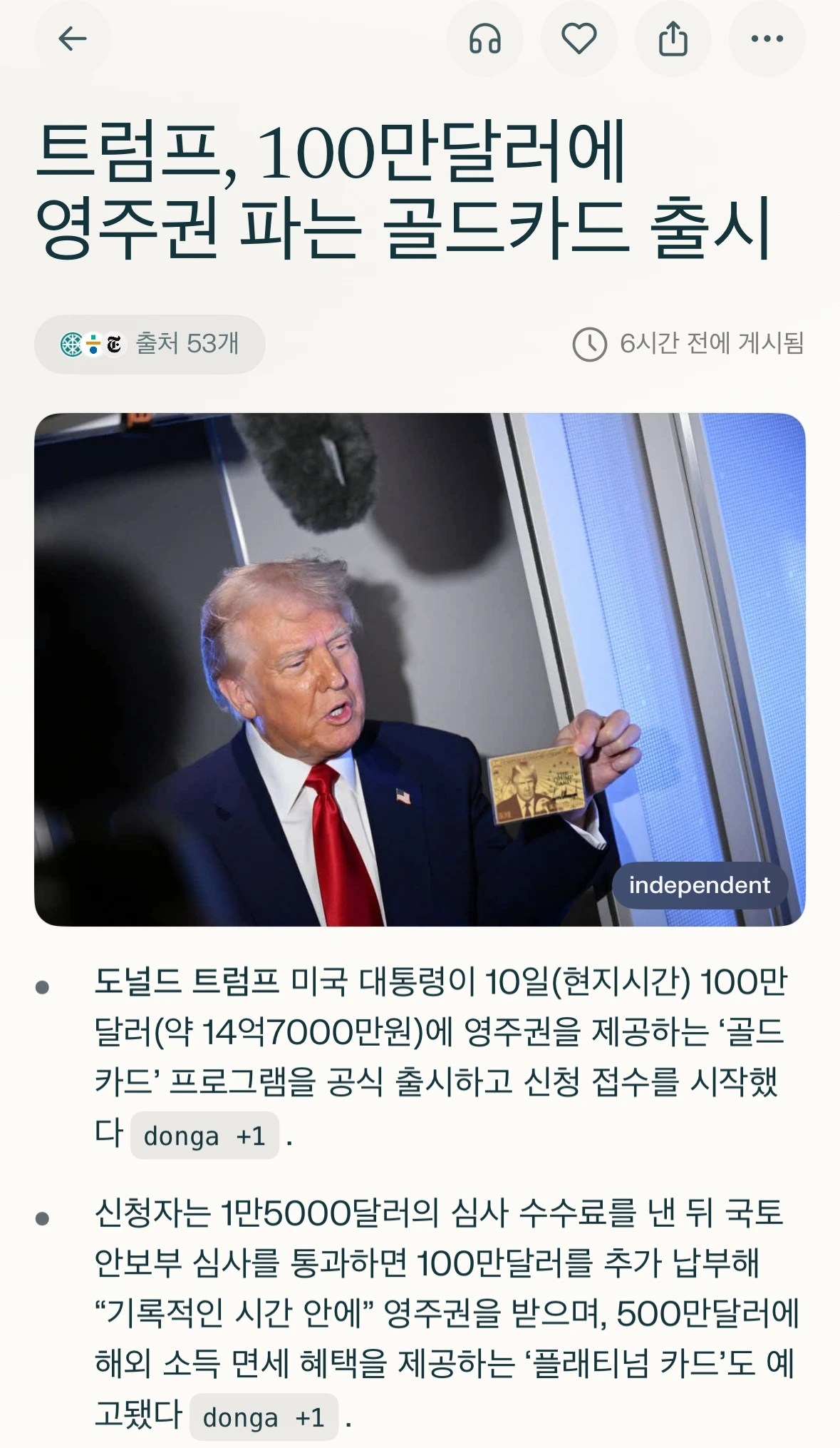 말도 많았던 트럼프 골드카드가 공식 출시됐다고 한다.