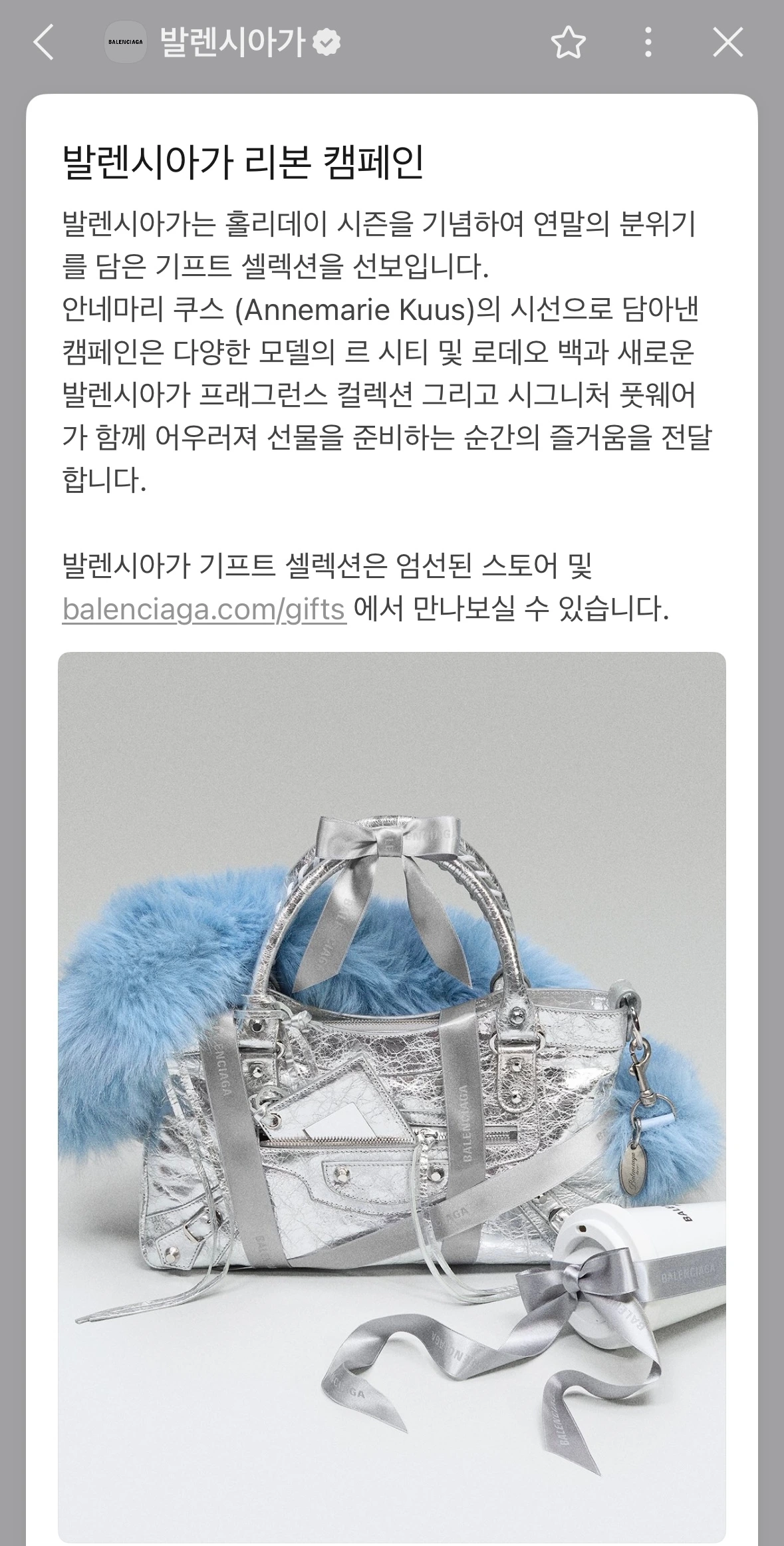 다들 홀리데이, 크리스마스 분위기에 열을 올릴 수밖에 없는 시기에 어제 눈에 띈 브랜드는 ‘발렌시아가’