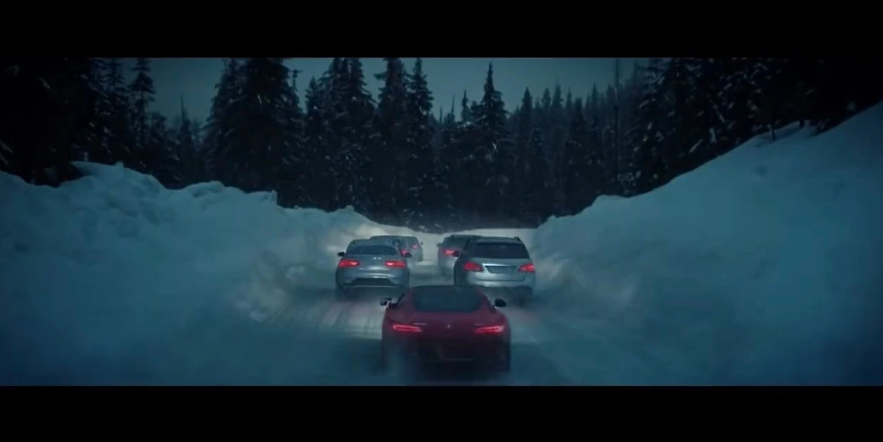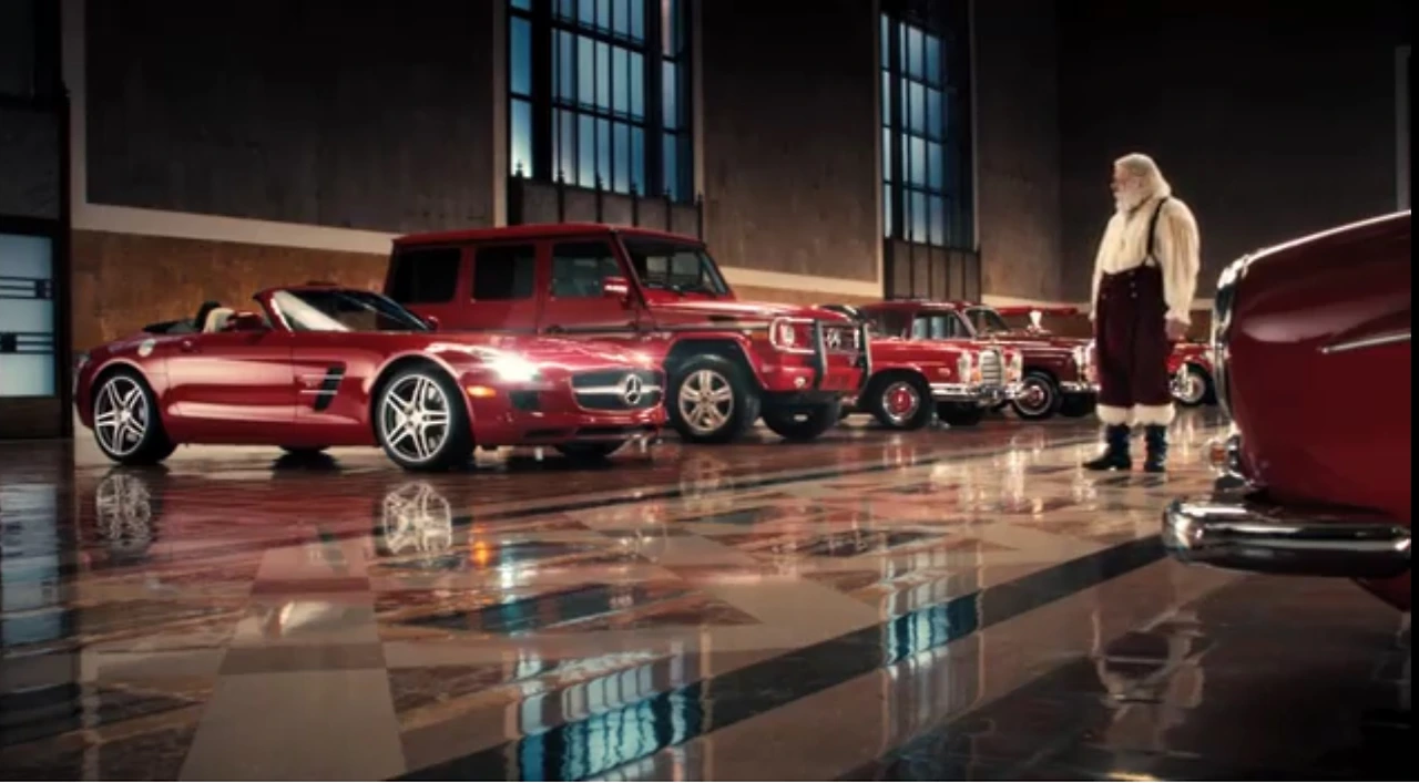 벤츠는 크리스마스에 어울리는 빨간 벤츠 스포츠카와 순록을 연상시키는 하얀색 SUV 조합을 10년 넘게 지속 이어오고 있다.