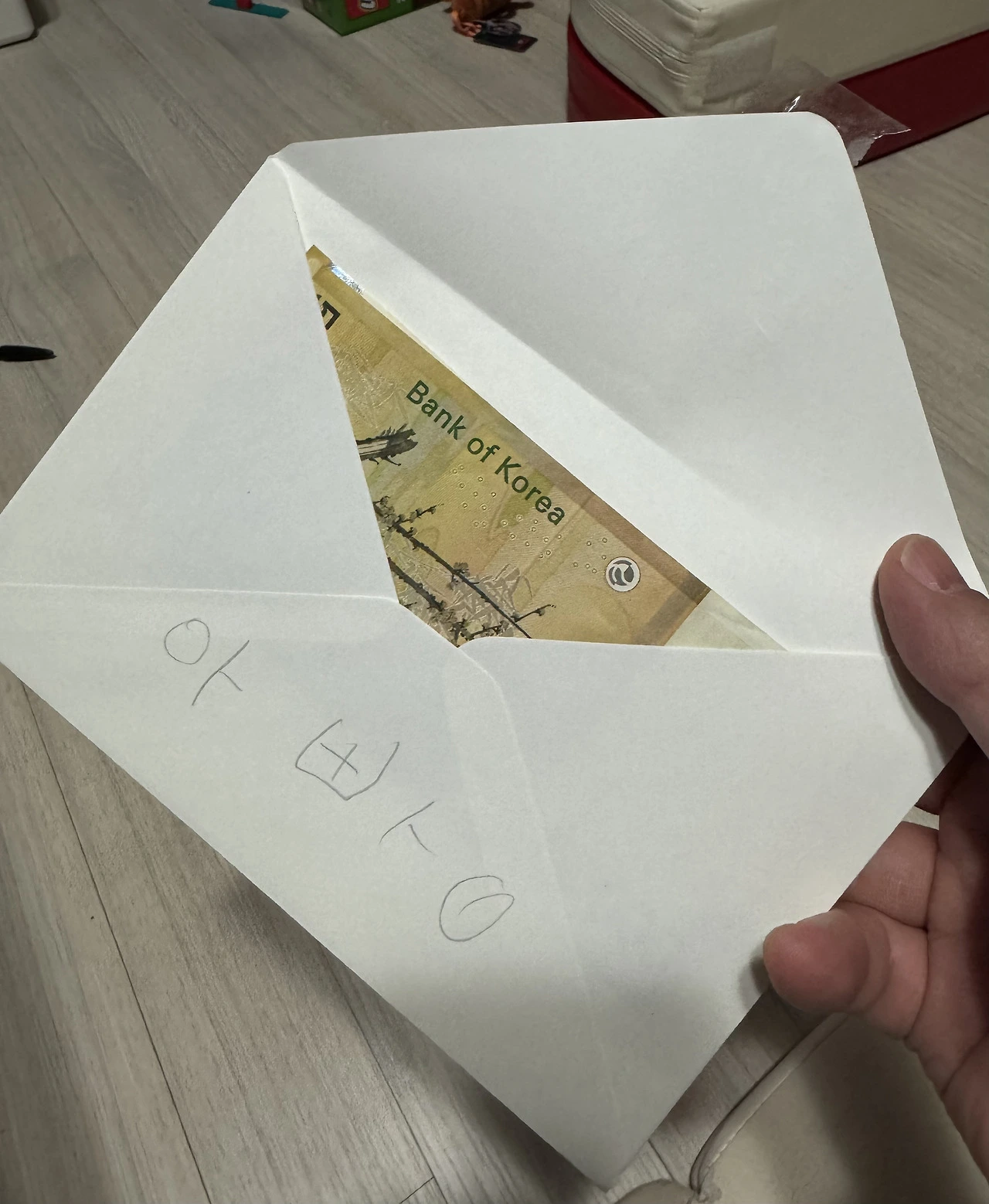 이게 뭔지 물어보니 둘째는 새해라서 돈을 선물한 거라 한다.