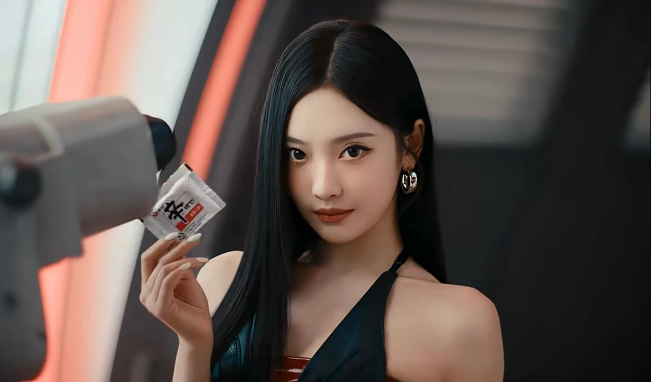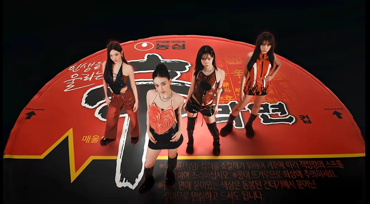 언제나 시선을 사로잡는 에스파 멤버들이 신라면 재품을 잘 홍보한다.