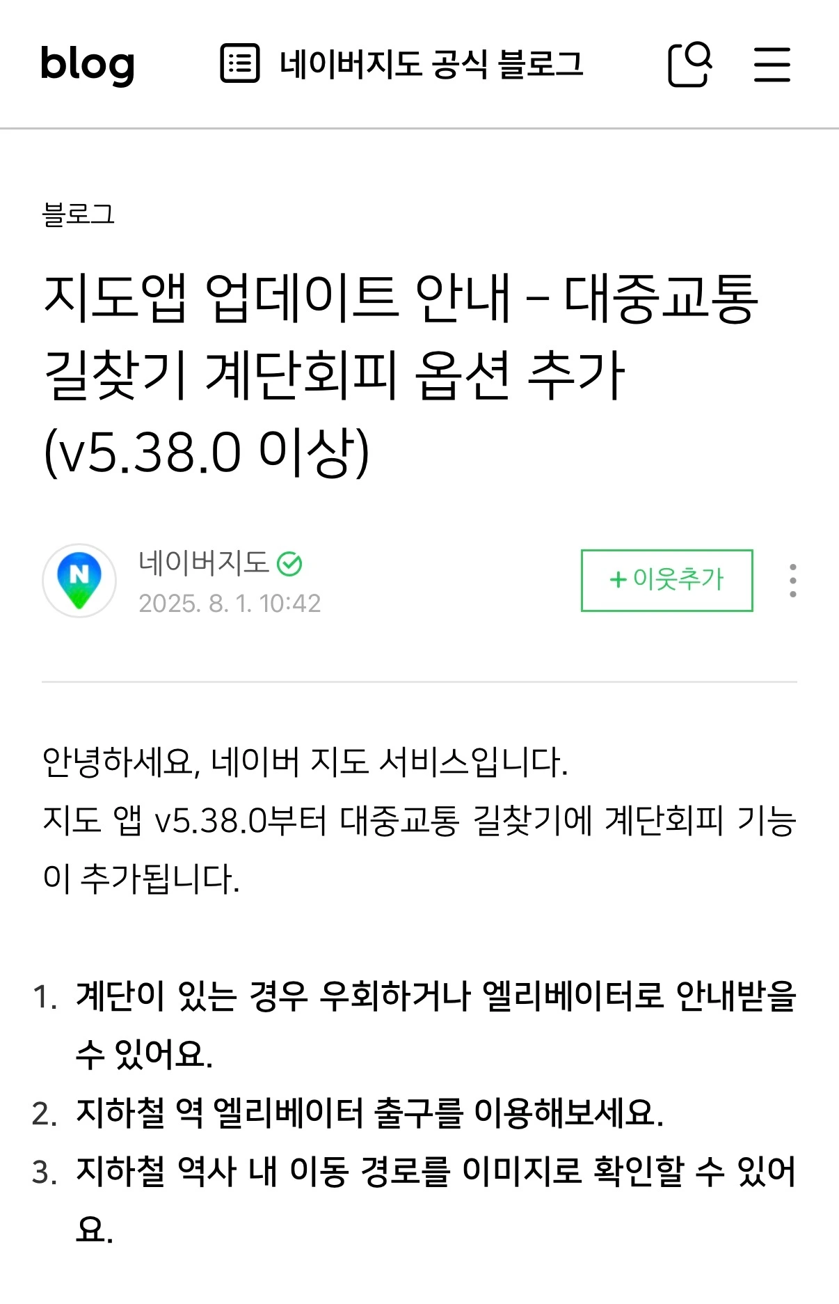 #네이버지도 #네이버지도앱 #편의기능 #계단회피옵션 #업데이트 #B디자이너 #지미박