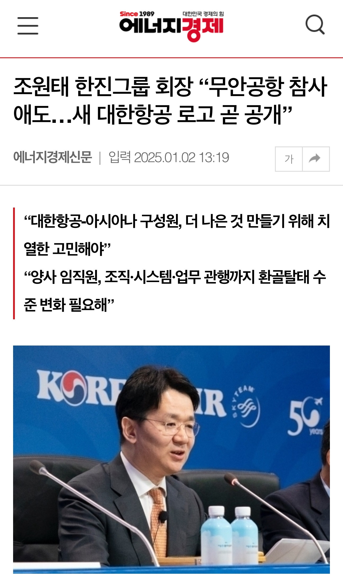 하지만 유일한 변수는 제주항공 무안공항 참사 때문에 워낙 분위기가 안 좋은 상황이라 뭔가 새로운 CI 선포에 타이밍이 참 애매하다는 점이다.