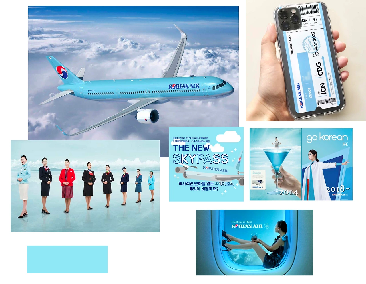 대한항공 CI, 로고 자체에는 없는 컬러인데 사실상 대한항공을 상징하는 대표 컬러라 할 수 있는 컬러이고, 필자는 대한항공의 이미지를 산뜻하고 세련되게 만들어 준 아이덴티티 핵심 요소라 생각한다.