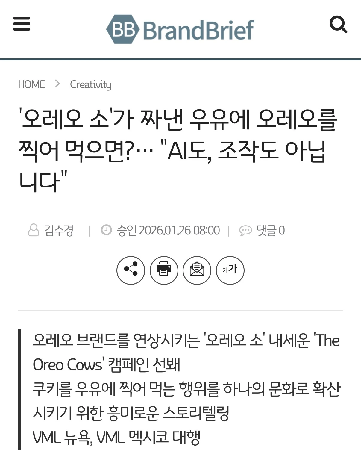 즐겨보는 브랜드브리브에서 본 오레오 소(Oreo Cows).