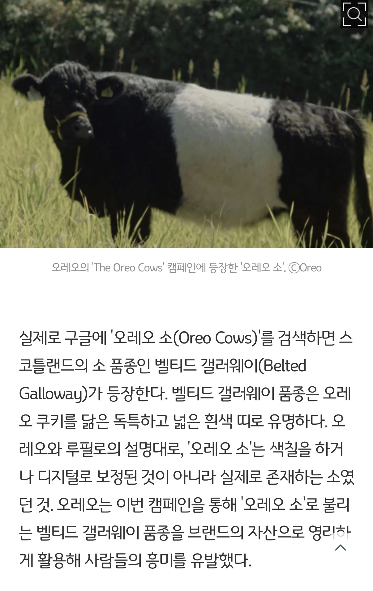 오레오를 연상케하는 소를 활용한 브랜드 마케팅이다. 이 실제 하는 소는 스코틀랜드의 소 품종 중 하나라고 한다.