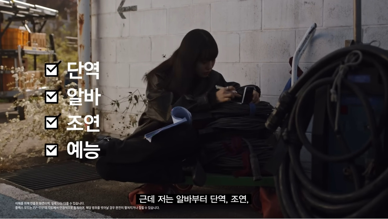 고민시 배우는 올여름쯤 아무도없는숲속에서(일명 아없숲)에서 그 진가를 알게 되었는데, 독특한 분위기의 매력이 갤럭시 브랜드 이미지로 잘 전이되는 듯하다.