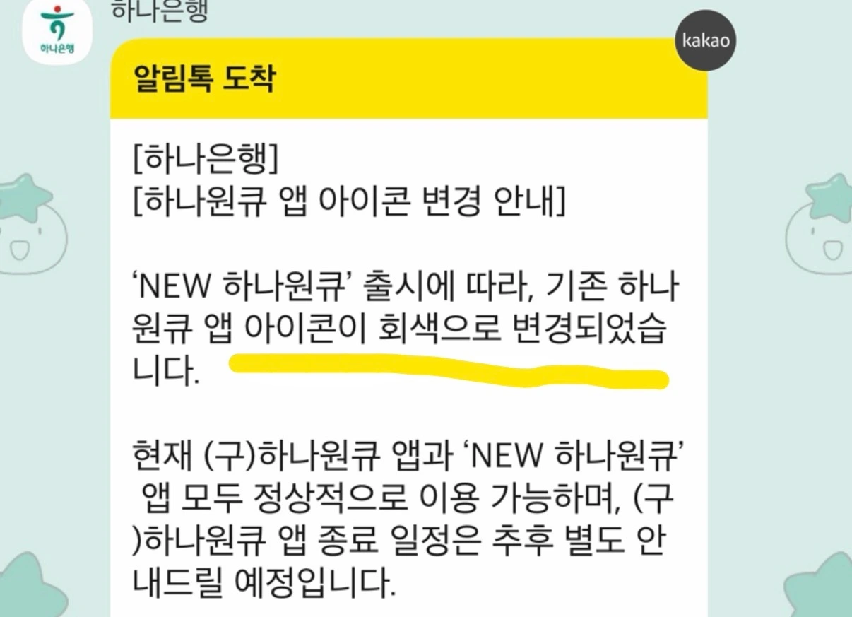 어제 하나은행으로부터 카카오톡 채널 문자를 받았다.