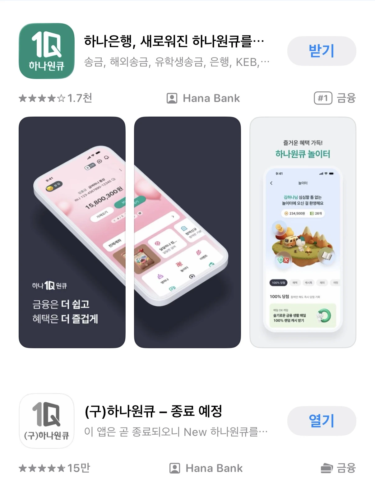 이번 하나은행 하나원큐처럼 기존 구 앱을 회색 처리한 사례가 또 있을까 싶을 만큼 생경하다.