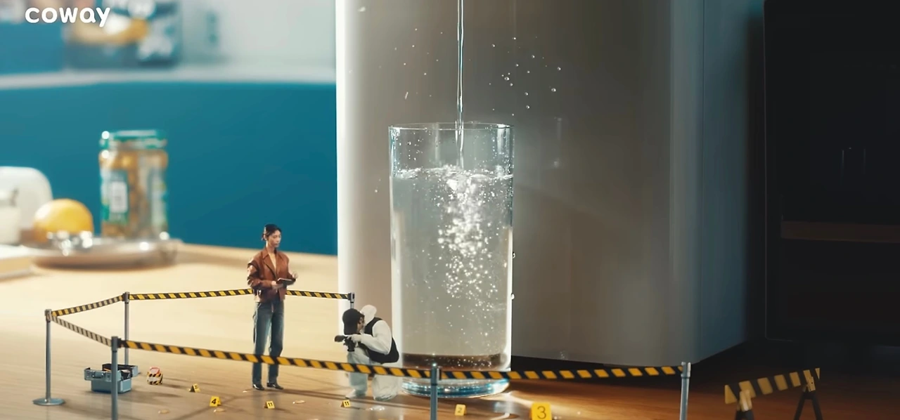 이번처럼 요원, 즉 사람을 작게 표현하고 물이 튀는 등의 정수기를 사용하면서 소소하게 불편했던 점을 효과적으로 상기시키는 모습에서 세심한 고민과 연출이 돋보인다.