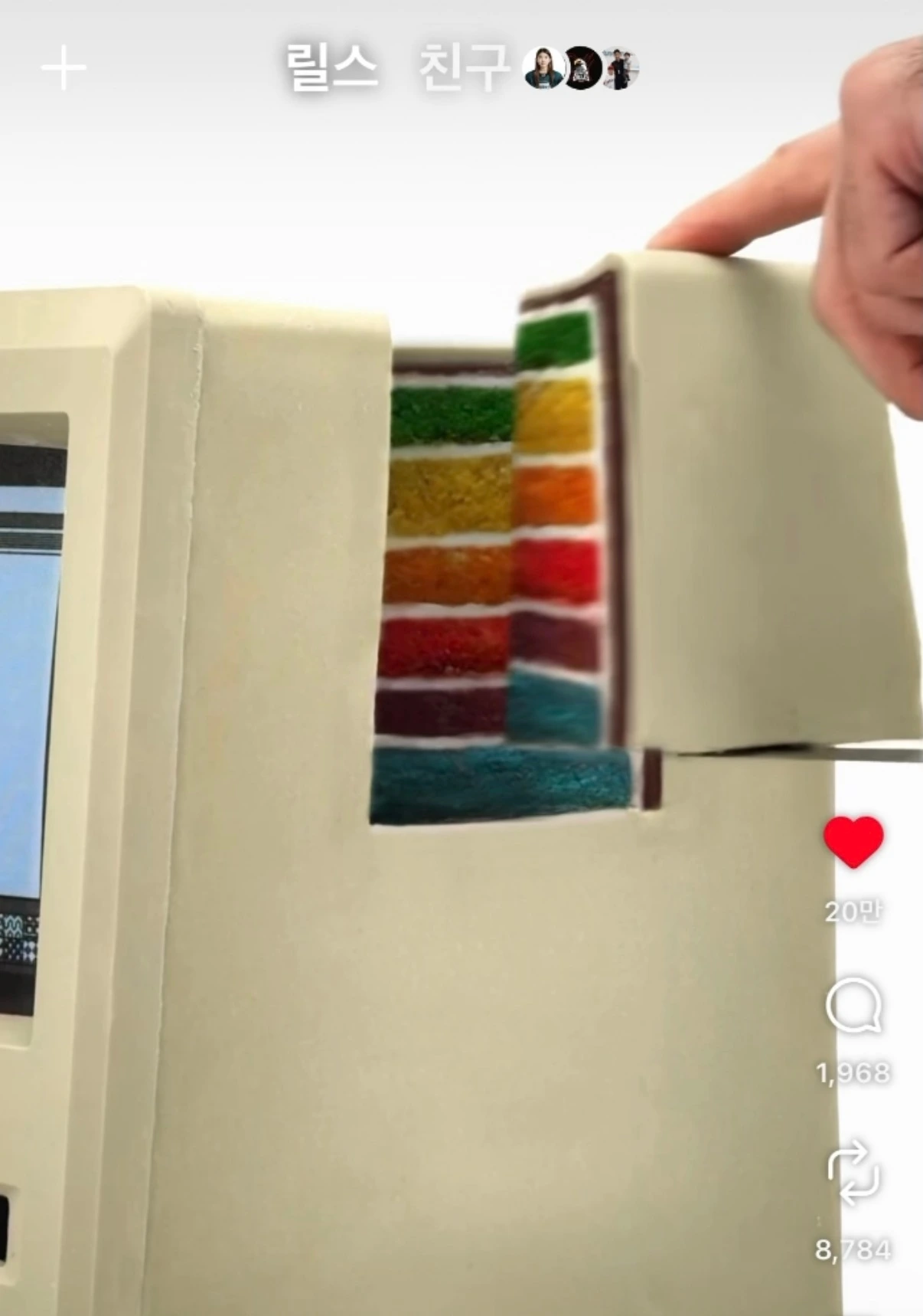 추억의 레트로 맥킨토시가 사실은 무지개색 케이크.
