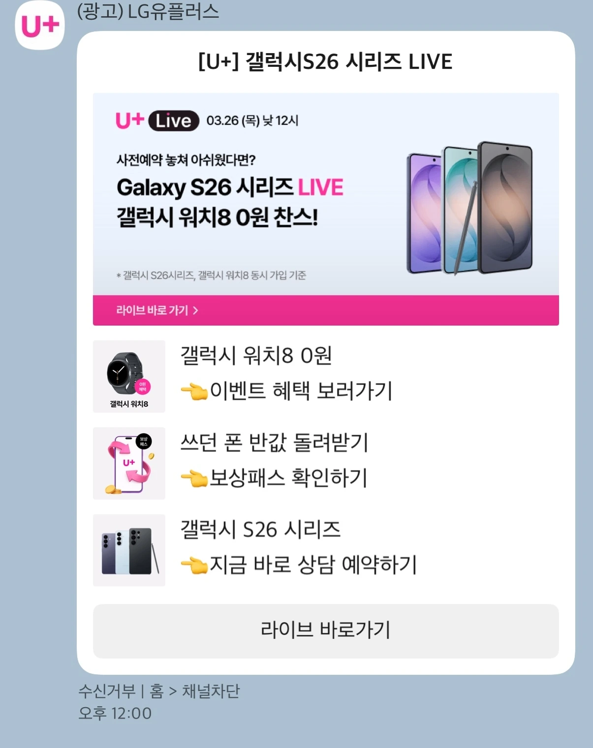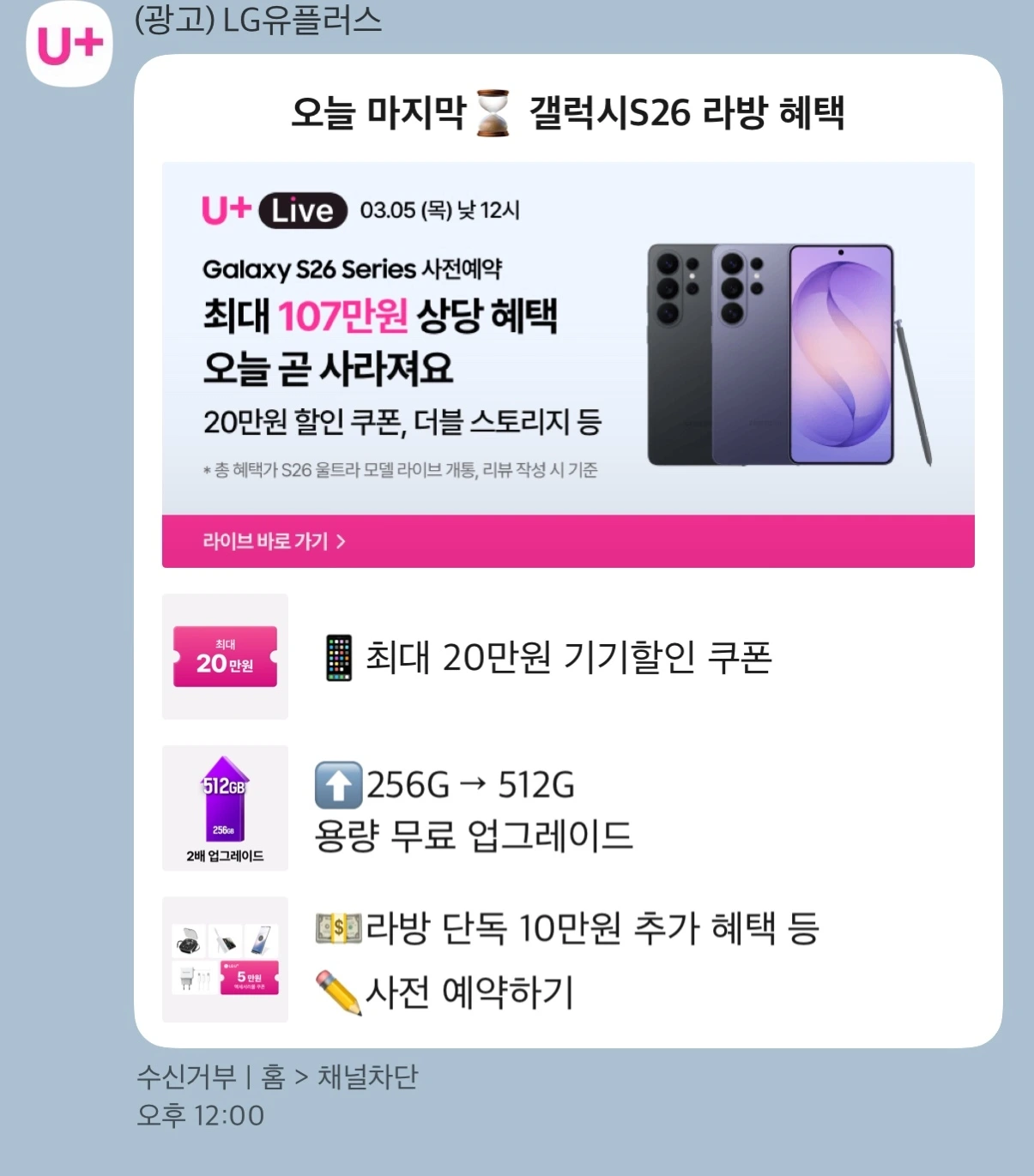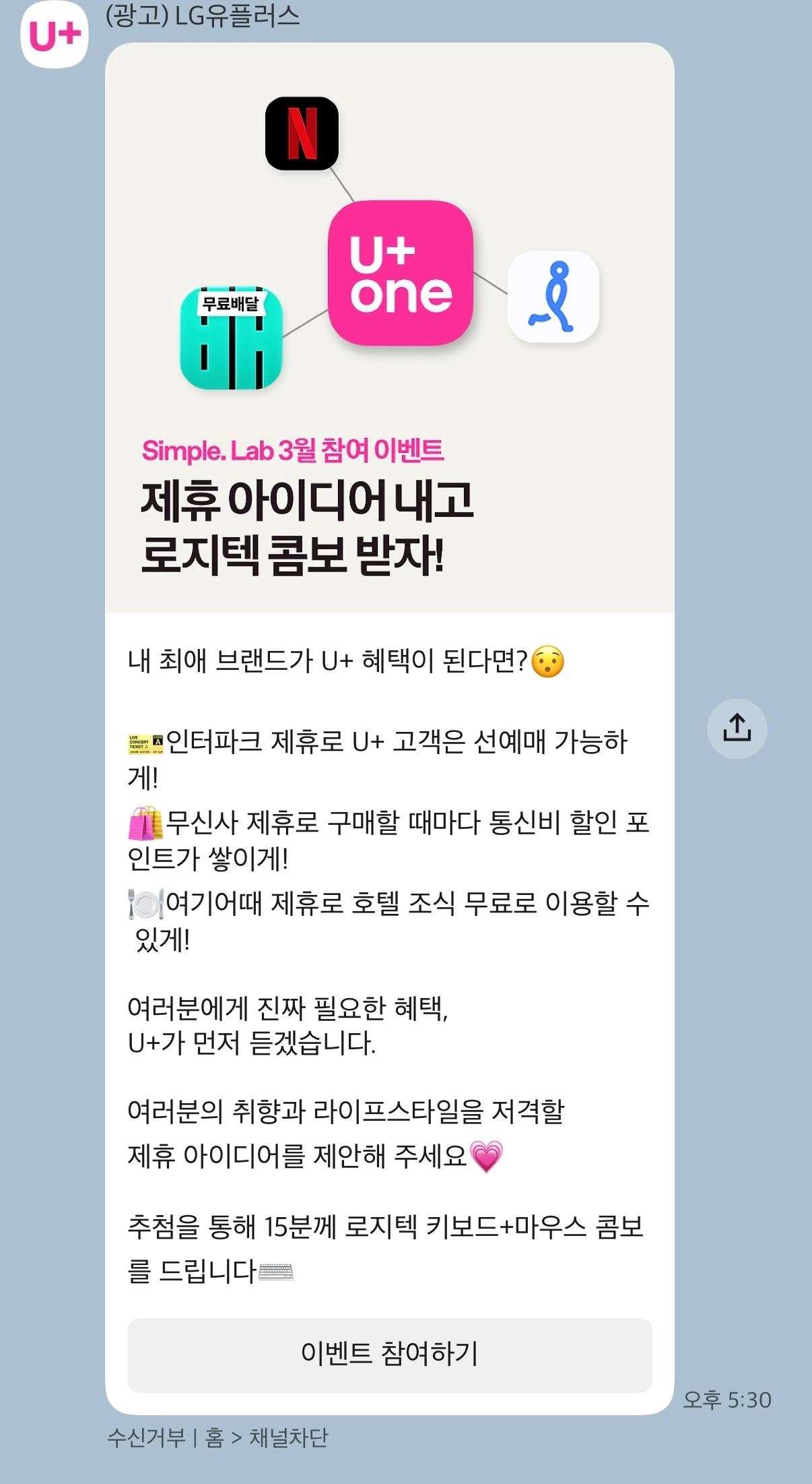 아마도 공식 채널은 하나지만 발송하는 부서가 달라서일 테다. 어쨌든 유플러스는 최근 잘 정비해간다고 느끼지만 여전히 이렇게 한 사업자, 브랜드에서 이렇게 다른 톤앤매너를 보이는 것도 여전히 조직의 숙제일 것이다.