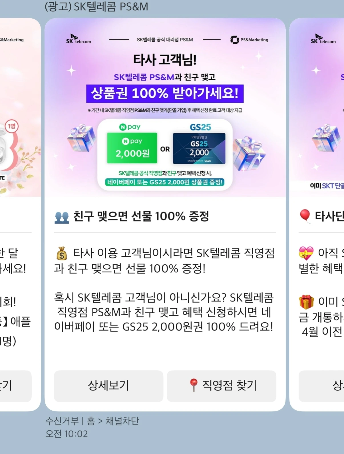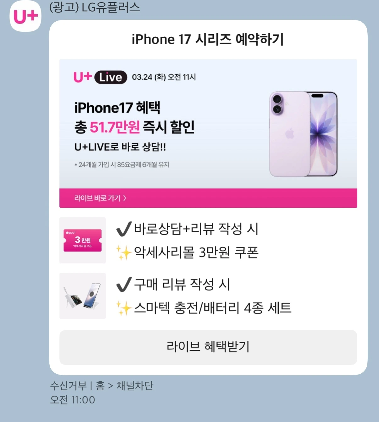 서론이 길었는데, 필자가 받은 광고 문자를 보자.